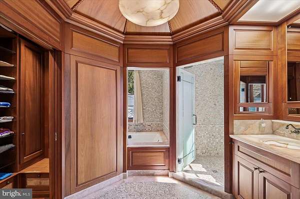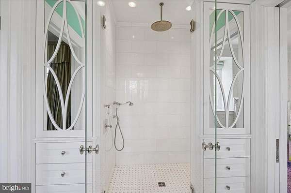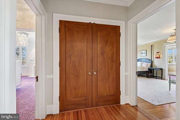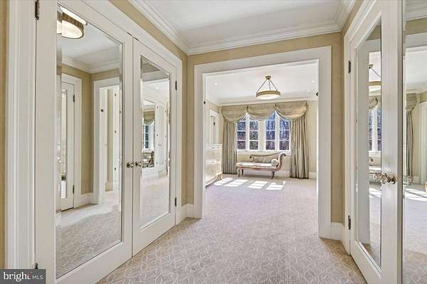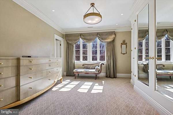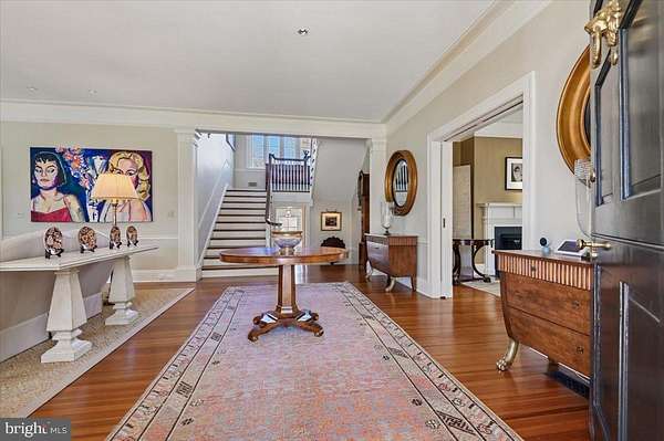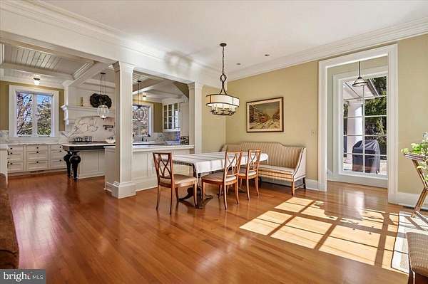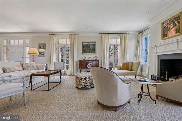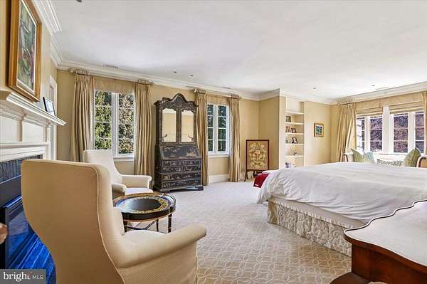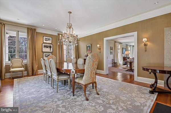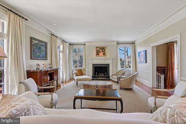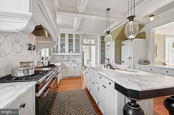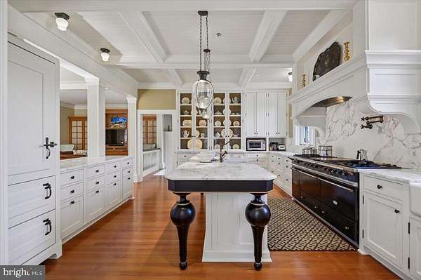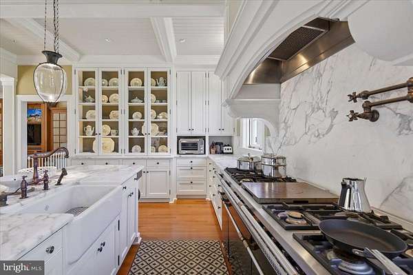 Discover the pinnacle of Ruxton with this beautiful estate, situated on 1.5 lush acres. This home welcomes with a stately tone of timeless elegance. Meticulously renovated with a discerning eye, ensuring that no detail was spared; it is a masterpiece of modern luxury and craftsmanship. The journey begins in the gracious foyer that is anchored by warm hardwood floors & custom moldings. A grand staircase leads the eye upward, framed by a multi-pane window that floods the entry with natural light. The foyer flows into a formal LR that feels both expansive & intimate. The fireplace and sun-drenched interiors are a hallmark of this space & multiple sets of French doors lead to the front porch. The architectural quality continues into the formal DR. Gold-toned walls provide a backdrop for a fireplace and a crystal chandelier. Tall windows overlook the grounds and wide cased openings allow for an effortless transition to the foyer & kitchen. The library offers custom built-ins for a curated book collection and seamlessly integrate a media center above a fireplace. The heart of the home is a chef's kitchen that blends professional-grade utility with custom finishes. Showcased is the striking black-and-gold Lacanche range set against a marble backsplash. A center island with marble countertops and custom turned legs is complemented by a farmhouse sink, dual lantern pendants, and a coffered ceiling. This culinary hub flows into a breakfast area and a gallery hall, which doubles as a refined beverage center featuring custom cabinetry & illuminated hutches. Adjacent to the breakfast area, an inviting den with custom cabinetry and media center. Further enhancements include a butler's pantry boasting floor-to-ceiling storage along with a secondary walk-in pantry. A full bathroom completes the functionality of this wing which opens to the pool, allowing easy access into the home without disruption to the formal living areas. Ascend the grand staircase to the primary suite, starting with a stately bedroom anchored by a fireplace. Awash in natural light from oversized windows and a private seating area for comfort. A dual sanctuary, featuring two separate bathrooms that offer distinct aesthetics & luxury. The first bathroom is defined by an octagonal layout wrapped in mahogany millwork and topped with a tray ceiling. There is a soaking tub, walk-in shower, and elegant vanity. The second and equally sophisticated bathroom leans into a classic-inspired design. It boasts a marble vanity against gold-toned floral walls and elegant sconces. An arched opening leads to a walk-in shower. Between these two, an expansive dressing room with floor-to-ceiling mirrored wardrobes, a sitting area & ample organizational space. Versatile living continues with two distinct suites. The first is a vibrant bedroom and a light-filled study. It is connected via a shared, updated bathroom to a second gracious bedroom. This suite boasts a private sitting room, where a wall of windows overlooks the tree-lined grounds. This level is finished by a private office and dedicated laundry room. The third level of the home provides a rec room with vaulted ceilings and a trio of windows with commanding views of the surrounding tree canopy. A 4th bedroom is a haven served by a well-appointed full bathroom. The exterior of the home is a stunning display of classic shingle-style, with a light grey facade accented by white trim & traditional black shutters. A welcoming front porch stretches across the front elevation. Manicured grounds include a sweeping driveway that leads to a detached three-car + garage. The backyard is a private oasis designed for outdoor living & entertaining. A bluestone terrace provides multiple areas for lounging and dining and a sleek rectangular pool is framed by stone coping and set within an emerald lawn. Privacy is paramount, provided by towering, evergreen hedgerows that creating a serene and secluded retreat. This one is spectacular!