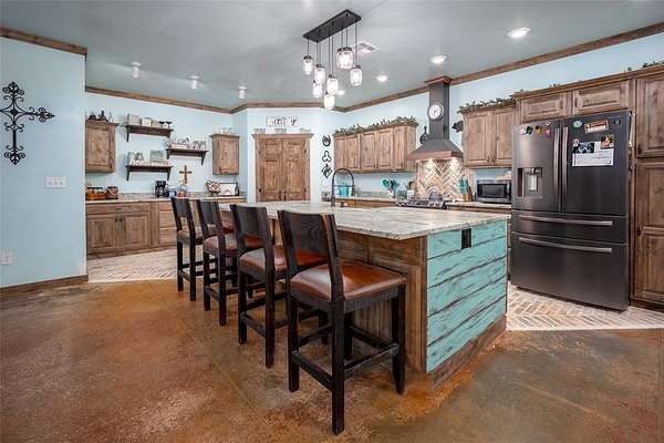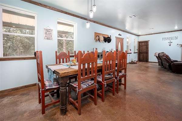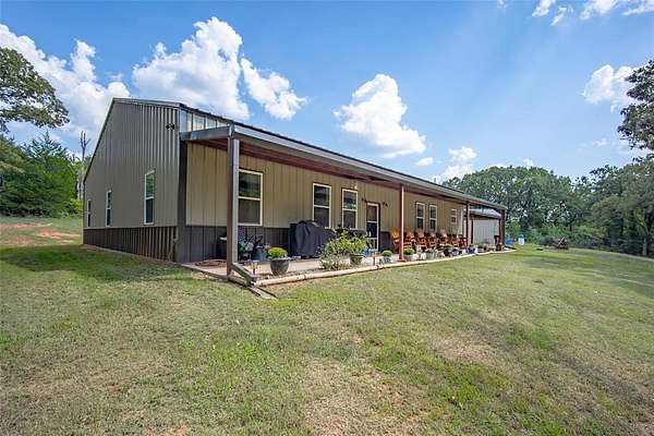 Make this peaceful and private home your own! This 3000sf barndominium with 5 bedrooms and 2.5 baths is hidden within 10 acres in Noble School District. Walk into a very large open concept living and kitchen area. (32x28) This home is perfect for hosting celebrations and holidays for your family and friends. The kitchen boasts leather granite counters, Tuscan stainless refrigerator, copper sink, knotty Alder cabinets and beautiful brick paver floors and backsplash. The large center island is a focal point of the kitchen with room for barstools.There is a separate pantry with plenty of room to store all the extras. The Primary bedroom is 18x18. The primary bath has a separate tile shower (tile to the ceiling) and tub, granite counters and walk in closet that goes out to the laundry room. The laundry room has a granite counter and cabinet on each side of the W/D. The 4 secondary bedrooms are large with deep closets and sliding barn doors. The secondary bedrooms range in size from 12x14 to 13x14. There is ample storage in the hall with an oversized storage closet with shelves and a separate coat closet. Enjoy the 24x30 insulated shop with concrete, electric, lights and a water spigot near the garage door. The 24x24-2 car carport sits in between the house and shop. The home is located in the middle of the land, so there is 5 acres of trails and trees behind the house for hunting or riding ATV's. Watch kids and nature from your 60x8 foot covered front porch that looks onto the back part of the property. ADDITIONAL EXTRAS: Whole house water filtration system and water softener, 50 gallon hot water tank, well water, high and low outlets throughout the home, spray foam insulation and batting in some interior walls. The home is a freestanding metal frame shell and has plenty of attic space to build out more living space. All paved roads lead to this home and it's less than 2 miles from a Dollar General.