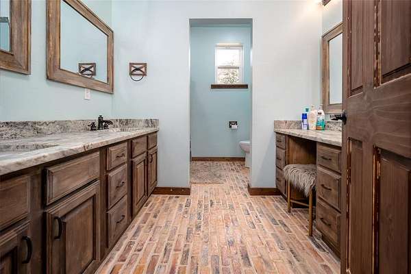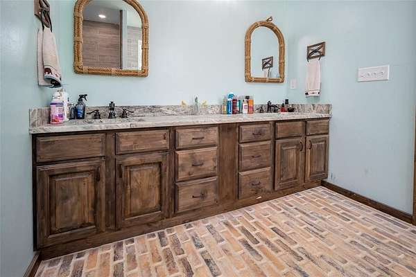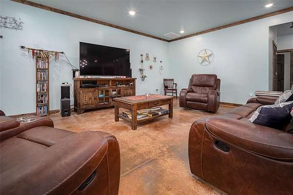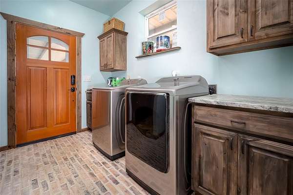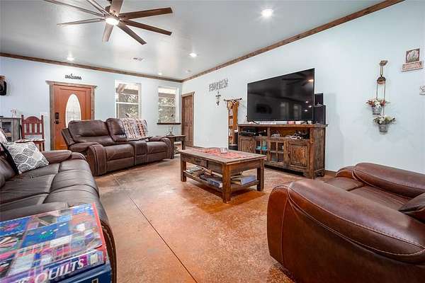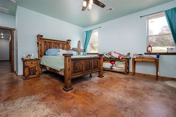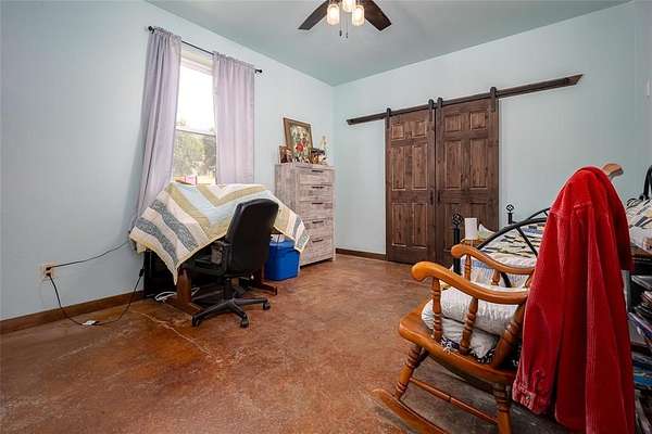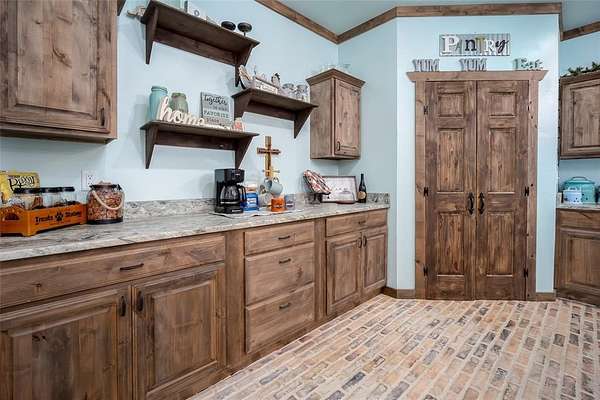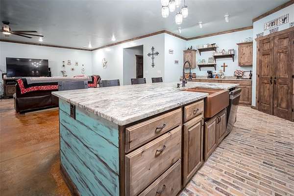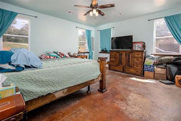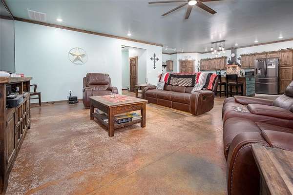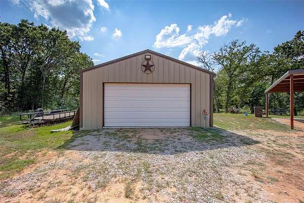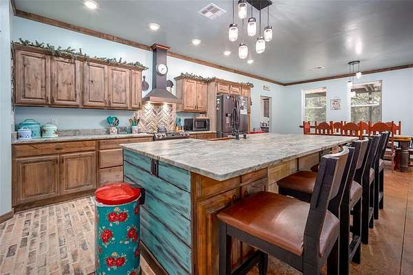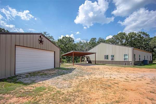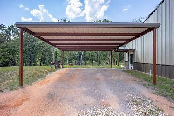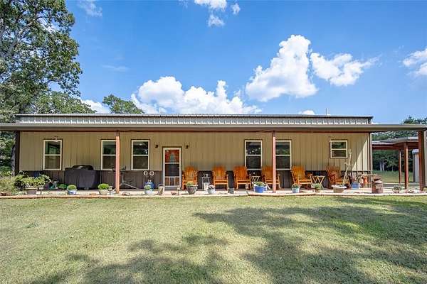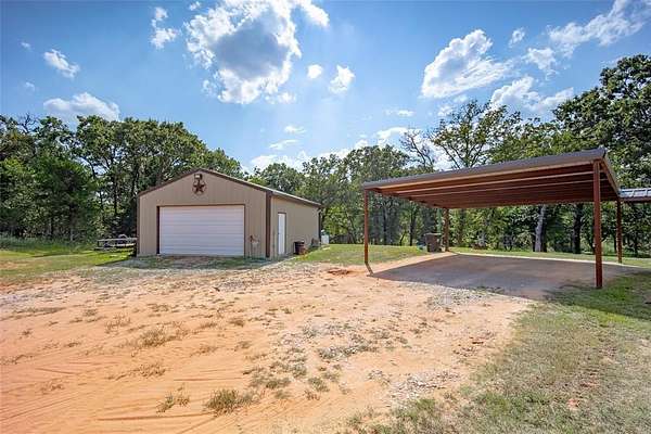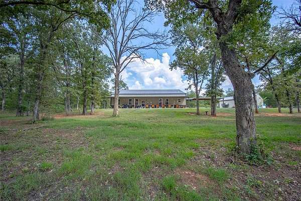 Make this peaceful and private home your own! This 3000sf barndominium with 5 bedrooms and 2.5 baths is hidden within 10 acres in Noble School District. Walk into a very large open concept living and kitchen area. (32x28) This home is perfect for hosting celebrations and holidays for your family and friends. The kitchen boasts leather granite counters, Tuscan stainless refrigerator, copper sink, knotty Alder cabinets and beautiful brick paver floors and backsplash. The large center island is a focal point of the kitchen with room for barstools.There is a separate pantry with plenty of room to store all the extras. The Primary bedroom is 18x18. The primary bath has a separate tile shower (tile to the ceiling) and tub, granite counters and walk in closet that goes out to the laundry room. The laundry room has a granite counter and cabinet on each side of the W/D. The 4 secondary bedrooms are large with deep closets and sliding barn doors. The secondary bedrooms range in size from 12x14 to 13x14. There is ample storage in the hall with an oversized storage closet with shelves and a separate coat closet. Enjoy the 24x30 insulated shop with concrete, electric, lights and a water spigot near the garage door. The 24x24-2 car carport sits in between the house and shop. The home is located in the middle of the land, so there is 5 acres of trails and trees behind the house for hunting or riding ATV's. Watch kids and nature from your 60x8 foot covered front porch that looks onto the back part of the property. ADDITIONAL EXTRAS: Whole house water filtration system and water softener, 50 gallon hot water tank, well water, high and low outlets throughout the home, spray foam insulation and batting in some interior walls. The home is a freestanding metal frame shell and has plenty of attic space to build out more living space. All paved roads lead to this home and it's less than 2 miles from a Dollar General.