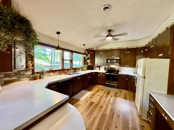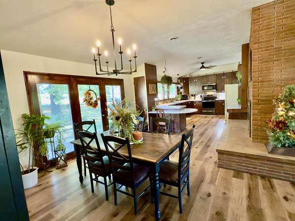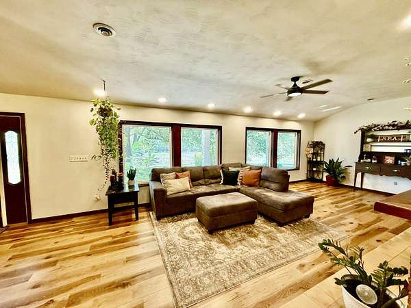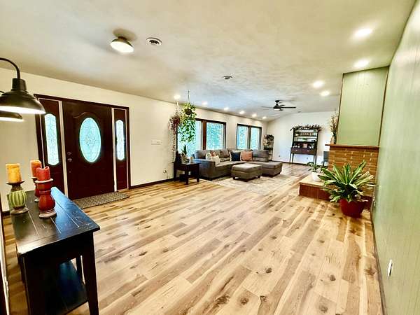 Country home with amazing location just outside of town on 15 acres m/l. This RARE find offers a ranch style home sitting off the road nestled in the trees with beautiful views! Entering the home you are greeted with high ceilings and large family room with HUGE windows and a double sided wood burning fireplace. The living room leads to the dining area and then opens up to the kitchen with again AMAZING WINDOWS AND VIEWS and so much natural light. Down the hallway of the home there are 3 bedrooms and 2 full bathrooms. There is also a basement with fireplace in the family room that includes a wet bar and third bathroom. So much space here to expand and make your own. This could make the perfect family room, workout area, home office, craft area, additional bedroom, mother-in-law quarters or ANYTHING you can imagine! Roof is newer and many updates have been made throughout the home. The 15 ac. of land that surrounds the home is fenced and ready to go for your livestock or to just enjoy the Ozarks! So much to love about the property - Location, Land, Home with Character and more! Call to view today. No Restrictions and LOW taxes.