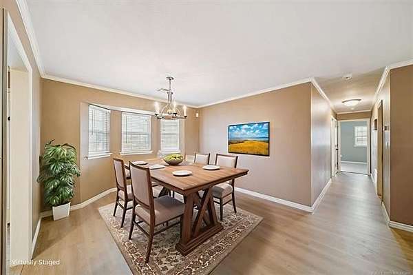 Est $1,739/moDiscover the charm of this corner lot home, nestled on 2 acres in the Owasso school district. This spacious three-bedroom, two-bath residence offers versatile living with a large third bedroom or perfect for a second living area, or a game room. Enjoy new carpet and LVP flooring. The kitchen boasts abundant cabinetry, while the primary suite features a walk-in closet, spacious tub, and a private bath. With mature trees, no HOA, and both a breakfast area and formal dining room, this home is a blend of comfort and potential.