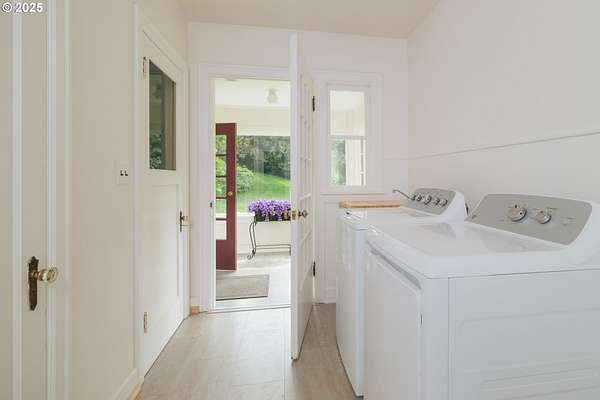 - Dumbwaiter, Garage Door Opener, Hardwood Floors, Laundry, Tile Floor