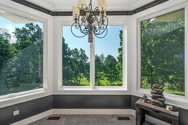 Nestled on approximately 37 acres in Pine Grove Township, this custom-built Glas & Associates Home isn't just a house; it's a private sanctuary. Located at 09222 23 1/2 Street in Gobles, MI 49055, this 5-bedroom, 7-bathroom gem offers the ultimate escape with its secluded hilltop setting and breathtaking countryside views. Tucked discreetly away from the road, it promises unmatched privacy and serenity. Grandeur and Comfort on the Main Floor Step inside and be captivated by the two-story stone fireplace that commands attention in the grand living room. Flanked by custom built-in cabinets and shelves, this impressive focal point sets the tone for the entire home. The open floor plan effortlessly guides you into the kitchen and dining areas as well as the main floor office-library, creating an inviting space perfect for both lively entertaining and quiet relaxation. The heart of this home, the gourmet kitchen, is a chef's dream. It boasts a substantial center island, a handy snack bar, a high-end Sub-Zero refrigerator, warming drawers, and a beverage fridge, ensuring every culinary need is met. Crowning the main floor is the primary suite that defines luxury. Its warm character, accented by unique barnwood walls and a large built-in electric fireplace, creates an inviting retreat. The master bathroom is equally indulgent, featuring heated floors, a spacious ceramic walk-in shower, a separate whirlpool tub, a double vanity, and generous his and hers closets with custom built-ins providing unparalleled comfort and convenience. Upstairs Retreats and a Basement Oasis Upstairs, three spacious bedrooms each offer the luxury of a private bathroom, ensuring comfort and privacy for family and guests alike. The fully finished walkout basement opens up a world of possibilities. Imagine endless family fun in the dedicated family room, entertaining at the sleek wet bar, or challenging friends to a game on the 22-foot regulation shuffleboard table in the game area! This level also includes a fifth bedroom, an exercise room, a full bathroom, and for those who appreciate the finer things, a sophisticated cigar smoking lounge/audio-video room. Modern Amenities and Outdoor Paradise With a six-car attached garage (three up, three down), parking will never be an issue. This home is equipped for modern living, featuring a whole-house speaker system allowing music in most rooms, all controllable from your phone or wall panels. A new Generac whole-house generator and high-speed fiber optic internet ensure you're always connected and powered up, no matter what. The property extends its appeal outdoors with a new 40x60 pole barn, complete with a 3000-watt solar panel system for clean energy. Inside, you'll find a well-lit workroom with LED lighting and plenty of outlets. If you're yearning for peace and solitude in a meticulously crafted custom home, look no further. Experience the magic of the changing seasons through abundant windows, including those enchanting winter "snow globe" moments. With 37 acres of rolling hills and valleys, this prime land is also a true hunter's paradise for whitetail deer and turkeys. Convenient Location Despite its secluded feel, this outstanding property is remarkably convenient, located just 20 minutes from Kalamazoo, Allegan, and South Haven