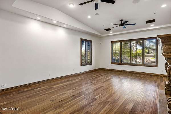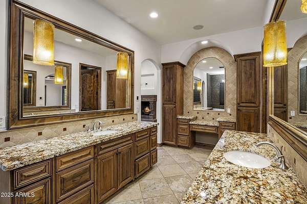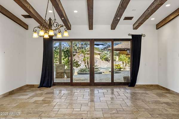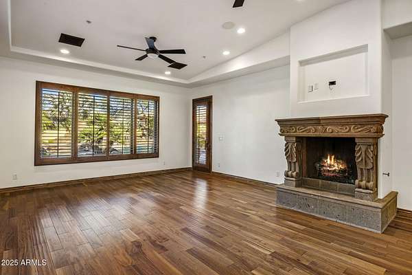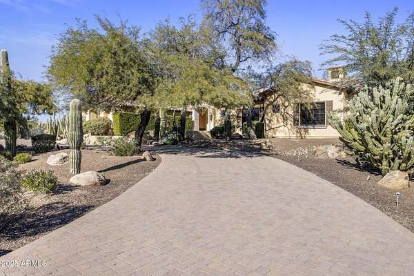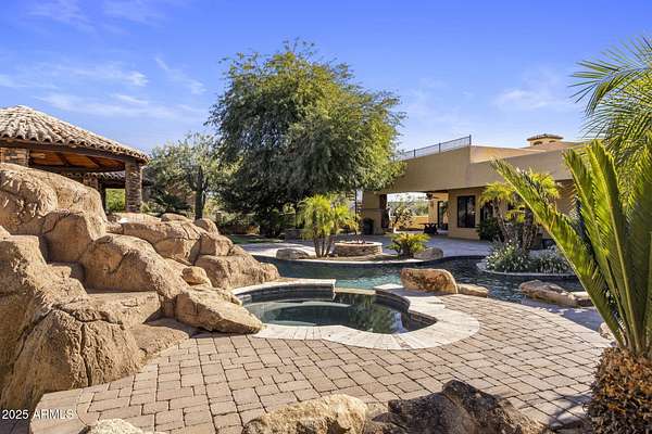 Unfurnished rental with majestic views and stunning sunsets on 1.69 acres.... a private retreat built for everyday living and effortless entertaining. Step through iron double doors into light interior paint and high designer ceilings with wood beams. An open layout draws your eye through double sliders to a resort-style backyard: pool with fiber-optic lighting, spa, waterslide + grotto, fire pits, ramada with fireplace, built-in BBQ, outdoor bath with walk-in shower, and expansive play spaces including a large grassy area, basketball court, putting green, and in-ground trampoline. Inside, high-end finishes continue with a chef's kitchen (island, gas range, backyard views), a wine cellar, and a wet bar with mini-fridge and ice maker.... perfect for hosting. Multiple gas fireplaces add warmth and ambiance. Upstairs, a view deck delivers 360 degrees panoramas of the McDowell Mountains and city lights. Available unfurnished. A rare chance to lease a true Desert sanctuary with space, privacy, and amenities that feel like a private resort. Minutes to shops, restaurants, and golf, plus effortless freeway access to reach all parts of the Valley and the airport.