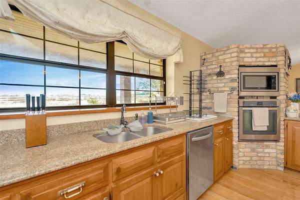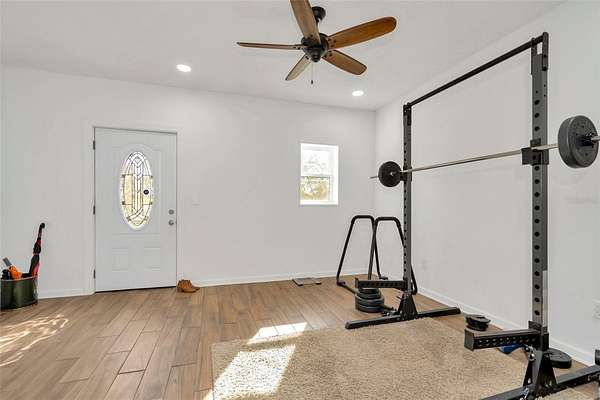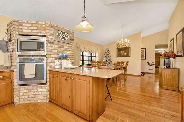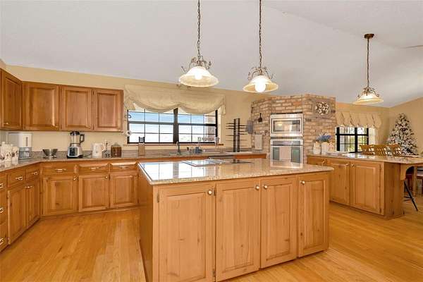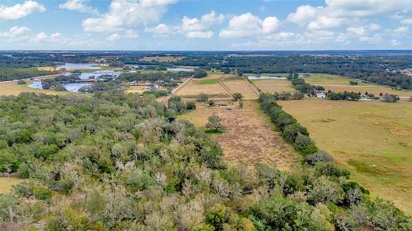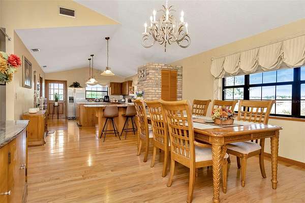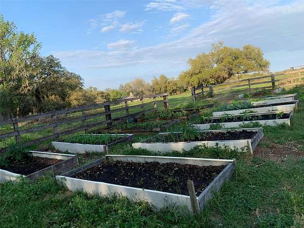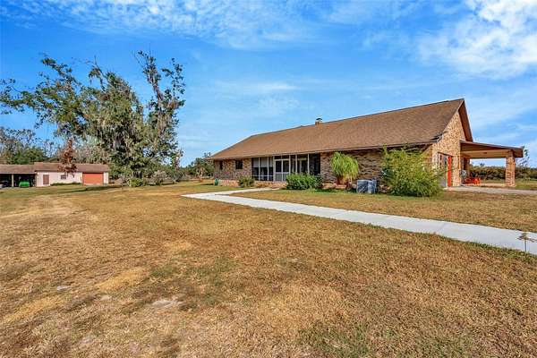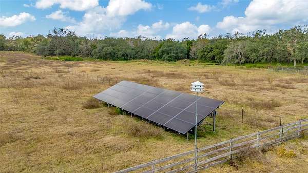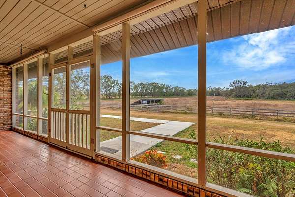 This remarkably stunning brick home on the 60 Acres high and dry offers 663' frontage on Fort King Road. It is the most scenic and fast developing area in Dade City along with the rapid growth of SR-52,US-301, I-75 especially the development of Mirada lagoon, which counts as one of the biggest lagoons in the States. The Pasco county Master plan indicated to add more infrastructures to absorb the new school, business center and amusement park, within 5-10 miles from the property. The home's total of 2,520 sq ft perfectly combines elegance, practicality, and a lifestyle of comfort. It features 3 inviting bedrooms, 2 bathrooms and a bonus gym/office, an open concept living area with vaulted ceiling and wood burning fireplace that flows seamlessly into the dining room with natural light throughout. The kitchen equipped with an updated appliances, granite countertop, and hardwood cabinets provide ample pantry storage then connect to the separate laundry room. Spacious master bedroom together with a walk in closet. The ideal of a wrap around porch perfect for a panoramic phenomenal view of the oak trees, so many kinds of colorful butterflies, cheerful singing birds and beautiful pond is a real serene retreat. The house was built with 12" solid brick, double layer windows to ensure the safety and energy efficiency, the roof was replaced in 2017. Extra amenities are the solar energy panels that supply almost enough energy for the entire home, a row of 6 beautiful, strong and secure chicken coops, each measuring 10ft by 12ft, totaling over 1,000 Sq. ft. and 225' deep well. There is also another 1,200 Sq. ft. work shop/ ban with a half bath and sink that provide plenty of space for all equipment or cars park. Last but not least is the healthy green of more than 600 olive trees already produce lot of fruit. So it is an opportunity to shape your own master plan on this prime location by converting it to a commercial strategic plan or maintain it as a private, beautiful landscape property, rural setting while still being close proximity to modern convenience. Medical center, Walmart, Downtown Walmart Medical Center is within 3 miles. Please call today to acquire more information.