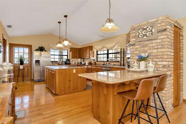 - Ceiling Fans(s), Eat-In Kitchen, Open Floorplan, Solid Surface Counters, Solid Wood Cabinets, Split Bedroom, Vaulted Ceiling(s)