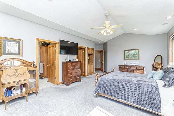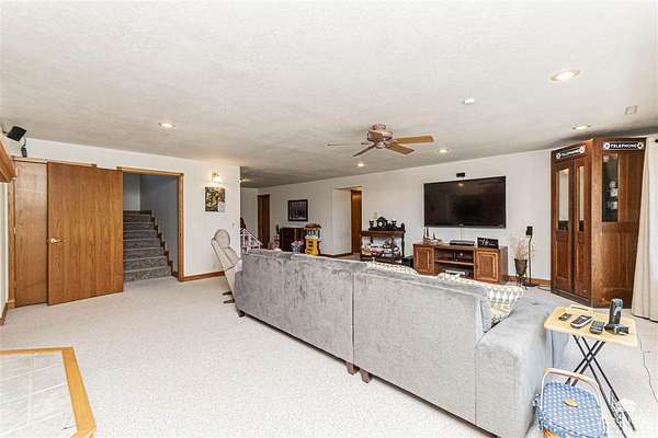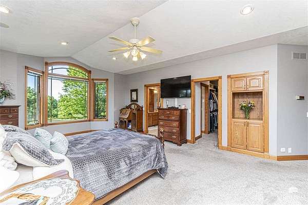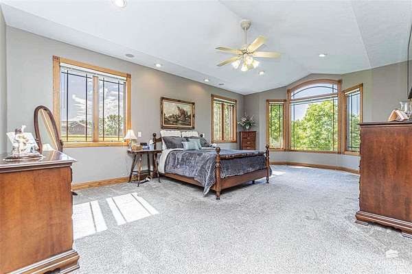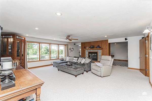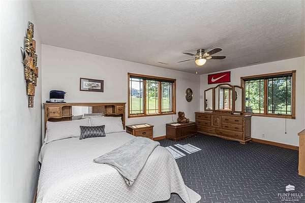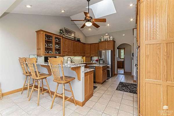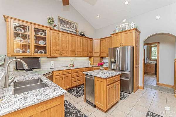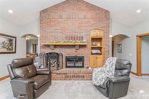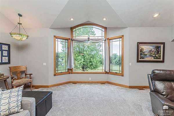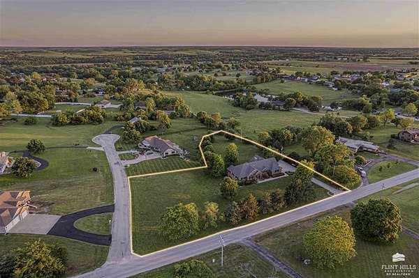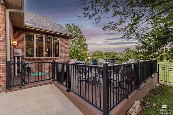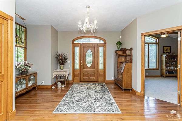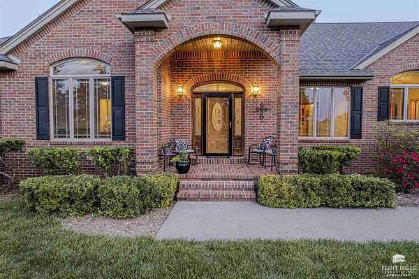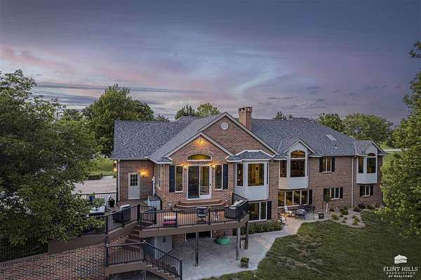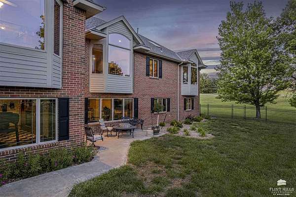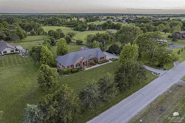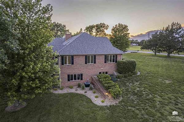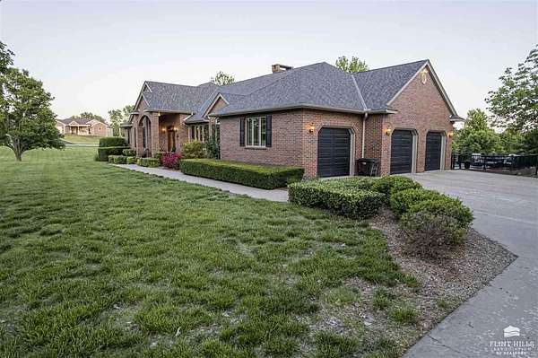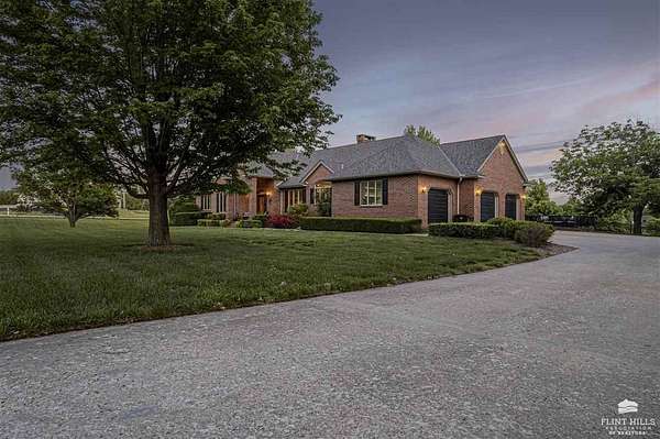 This stunning 5,700' all-brick home is perfectly situated on 2.2 acres just 2 miles from Council Grove Lake, offering the ideal blend of comfort and functionality. With 5 spacious bdrms, 4.5 baths, and a dedicated office, this home was designed with family living and entertaining in mind. The expansive layout includes a grand foyer, cathedral ceilings, windows that flood the home with natural light while framing peaceful views--bringing the outdoors in. The kitchen is a true centerpiece, featuring granite countertops, custom wood cabinetry with pull-out shelves, generous workspace, and a stunning brick fireplace wall that connects to the living area, creating a warm and inviting atmosphere for family gatherings and entertaining guests. Additional highlights include solid wood doors, hardwood floors in the entry and hallway, two fireplaces, 4 heating & air zones, an oversized 3-car garage, and a spacious patio--perfect for storage, comfort, and outdoor living.