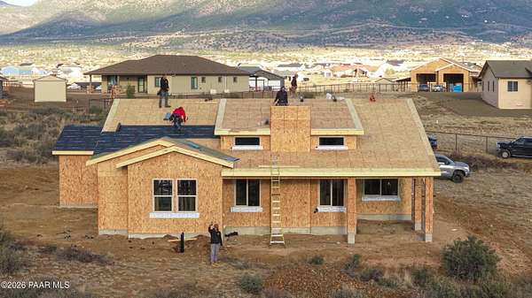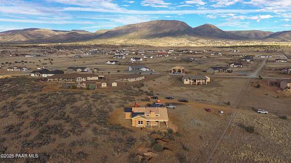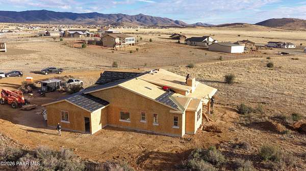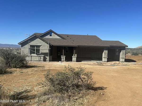Experience peaceful living and wide-open space in this beautiful newly built traditional-style home set on over 2 acres with breathtaking panoramic views, including stunning views of the Bradshaw Mountains. Offering 2,253 square feet, this thoughtfully designed home features three bedrooms, two and a half bathrooms, and a spacious three-car garage with additional RV parking.Inside, 9-foot ceilings and an open, inviting layout create a bright and comfortable atmosphere perfect for both everyday living and gathering with family and friends. The kitchen shines with quartz countertops and modern finishes, opening to a warm and welcoming living area anchored by a stunning fireplace that can be enjoyed as both gas and wood-burning -- ideal for cozy evenings year-round.Step outside to the covered patio and take in the quiet surroundings, expansive skies, and beautiful natural scenery. With partially fenced acreage and plenty of room to grow, this property offers endless possibilities for outdoor living, recreation, or simply enjoying the privacy and serenity of country living.Blending timeless traditional style with modern comfort, this new construction home offers the space, views, and peaceful lifestyle you've been looking for.Seller is willing to apply a credit toward flooring, allowing buyers to select the flooring of their choice, if under contract before early April.