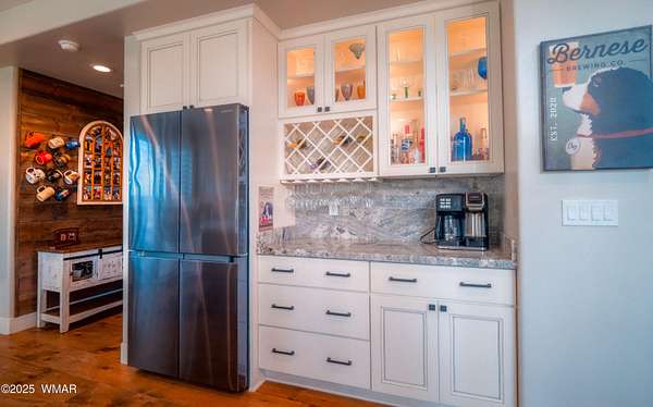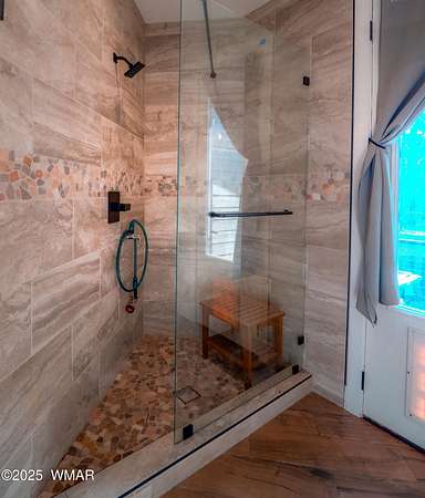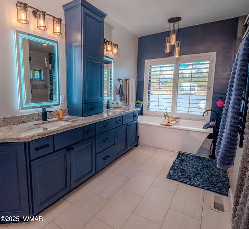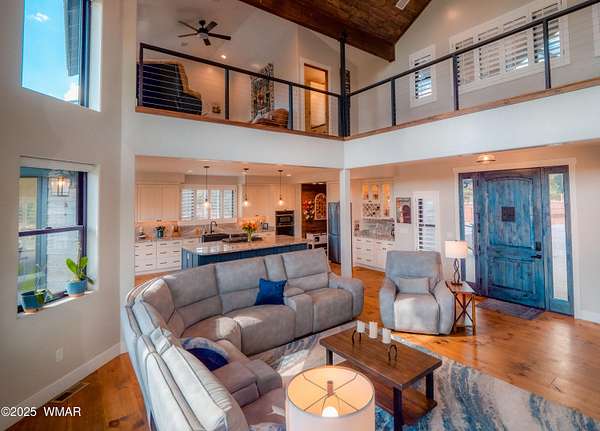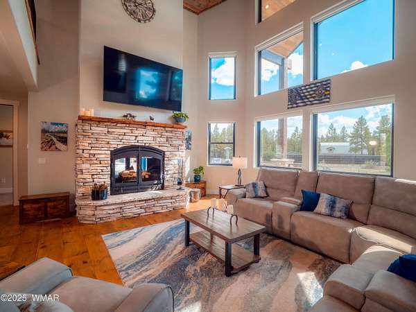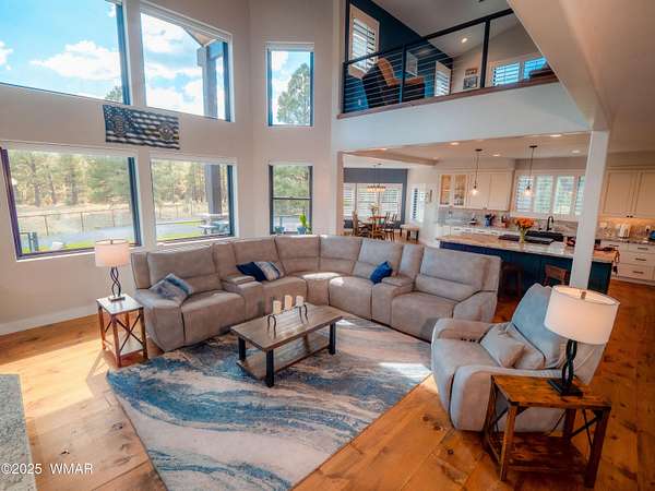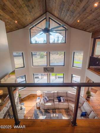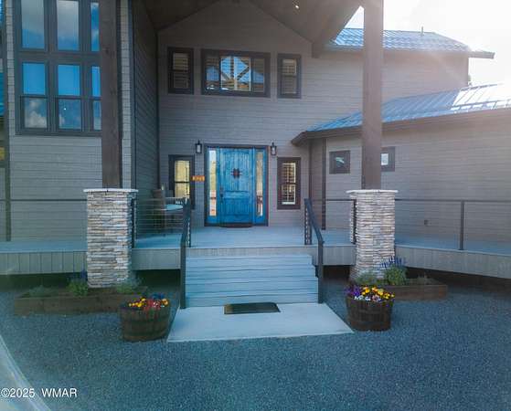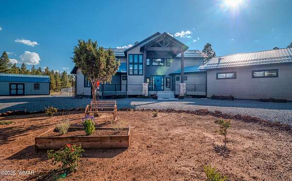If you've been dreaming of a Torreon-style home but want the freedom of horse privileges and NO HOA, this mountain modern retreat is the best of both worlds. Nestled on 2.64 acres, this one-of-a-kind, fully custom home (completed in 2024) offers over 3,000 sq ft of living space, blending clean modern lines with warm rustic touches that make it feel inviting the moment you step inside. The setting is pure White Mountains magic-just 800 feet from endless riding trails that wind through over 2 million acres of National Forest. Whether you're saddling up your horse, relaxing on the deck, or soaking in the spa, you'll feel surrounded by nature's beauty. The property is perfectly set up for equestrian living with a large sanded turnout, a 50' round pen, a shaded structure, and even room to add a barn. A 12'x32' Graceland shed with power is already in place, giving you plenty of space for tack or feed. Inside, the home is bright and airy, with windows in nearly every room to bring the outdoors in. The great room showcases tongue-and-groove ceilings and a stunning two-way fireplace that also warms the owner's suite. The owner's retreat is located on the main floor and feels like a spa getaway, featuring dual vanities, a 7'x7' double shower, an oversized soaking tub, and even a heated towel rack. The chef's kitchen is equally impressive, with granite counters and backsplash, a massive island, custom cabinetry, spice racks, and a walk-in pantry designed to make cooking effortless and enjoyable. Guests will love the thoughtful touches throughout, including a bathroom with a dog-washing fixture, backyard access, and its own deck. A spacious loft adds flexibilityuse it as a second living space, office, or easily convert it into a fourth bedroom. Everywhere you look, details shine: custom wood shutters, solid alder doors, wood and tile floors, and remote-controlled ceiling fans in every room. Practical comforts make this home as functional as it is beautiful. You'll enjoy spray-in foam insulation, two HVAC units with zoned thermostats, dual hot water tanks with recirculating hot water, a water pressure pump, an RO system with soft water loop, and Starlink high-speed internet. The oversized 880 sq ft garage is epoxy-coated and roomy enough for a full-sized dually, complete with a 50-amp EV plug. Outside, you'll find full RV hookups, solar-powered automatic gate, Trex decks front and back, a newer six-person spa, and easy-to-maintain landscaping with gravel throughoutno mud to worry about. Sellers have paid for a full set of plans (2 options) for a barn with loft living quarters, which they are willing to share. Furnishings, refrigerator in the garage, mounted televisions, and even a Kubota tractor or ATV can be added to this sale on a separate bill of sale, to make this an effortless, turn-key purchase. Every detail has been carefully thought out so you can move right in and begin enjoying life in your very own mountain meadow retreat.