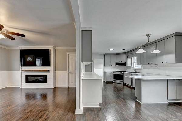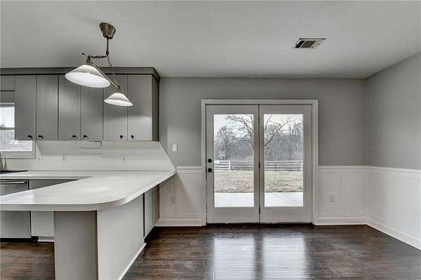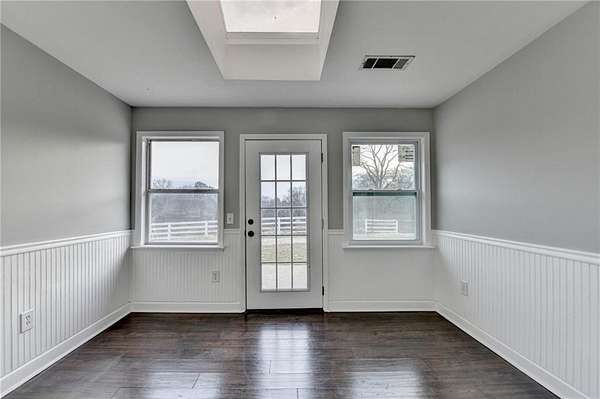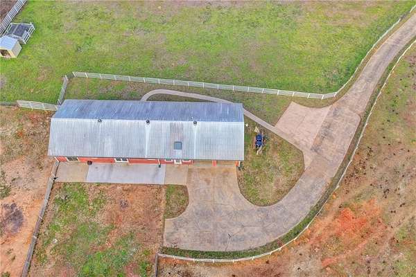 Welcome to peaceful county living on 5.1 acres in Forsyth County. Sought after N. Forsyth Schools. This freshly painted 3 bed 2.5 bed ranch style farmhouse offers functional and inviting layout. LVP flooring throughout. Mudroom/Sunroom off garage with skylights. Eat in Kitchen, stainless appliances with lots of cabinet and counter space. Family room with electric fireplace with shiplap surround. Owner's suite is off the family room with walk in closet. Owner's bath has dual vanity and Tub/Shower combo. At the other end of the home there is 2 additional bedrooms with nice size closets. There is a secondary full bath with extra large linen closet and an additional Half Bath. Large walk in closet in hall for storage. Spacious Laundry room The property is fenced all around. Outside enjoy wide open pasture, ideal for horses, animals, gardening and so much more. A rare opportunity to own useable land minutes to downtown Ball Ground and I-575. Less than a 1/4 mile to Eagles Beak Park and Poole's Mill Park.