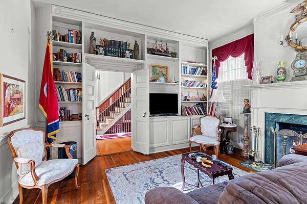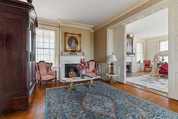 As you step into the grand foyer of this home, you feel transported in time. It presents itself with the curation of a museum, adorned with crown molding from an early governor's mansion, art on every wall & a beautiful federal style staircase leading both up to the 2nd floor & down to the finished basement.