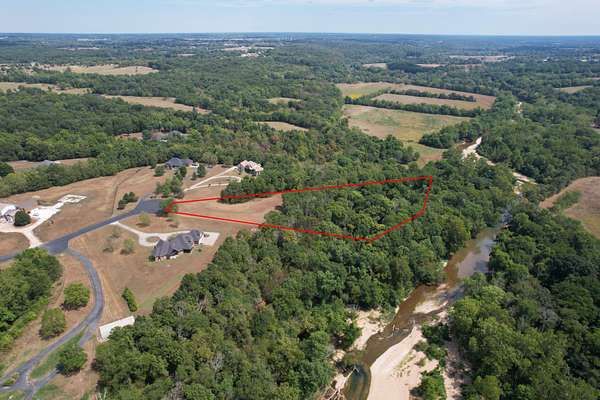 From Springfield, take Highway 65 South toward Ozark, take Jackson St. exit and go East, turn North (Left) on Riverside Rd., turn East (Right) on Greenbridge Rd., turn North (Left) on Smyrna Rd., turn Right on RIver Road Rd. end enter subdivision, turn Left on Rivers Edge Rd. to lot at the end of cul-de-sac.