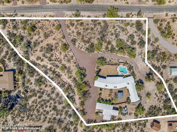 True mid-century ranch estate built in 1959 w/ classic wire-cut double brick construction, set on 2.88 acres w/ horse property zoning & no HOA. This 4 bed, 4.5 bath home offers a spacious & flexible layout w/ both a separate living room featuring a wood-burning fireplace & a family room. Several updates have been completed while much of the home retains its original character--providing a great opportunity for customization. North-facing Catalina Mtn views from the porch, along w/ a heated pool & spa. Well-equipped for a variety of uses w/ room for RVs, boats, animals & more. Detached bonus room, a 3-car garage w/ workshop space & compressor lines, outdoor car lift w/ 220 electric, detached playhouse & multiple storage sheds. Ready for your fresh ideas!