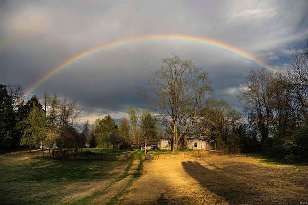 This historic 5 acre country retreat is listed under recent appraised value. Memories of the past remain as this location was once a general store and the limestone hitching posts still stand tall outside. Ranch over walkout basement features 3 bedrooms and 2 full baths with approximately 2,600 finished square feet of living space. The home and garage have a brand new roof. The basement has a secondary kitchen and the living area has a fireplace for cozying up to on chilly days. Basement has been waterproofed with warranty. The home also has solar panels which helps with utility bills. There is a screened in back porch, detached garage, root cellar and two barns. One barn needs some TLC (and has power) but the other would make a great space for family gatherings or parties, has power with water just outside. This barn originally stood by the current community center in Harrodsburg and moved to the property. The beautiful acreage in back makes this a perfect hobby farm scenario with pasture for livestock, several water spigots, fertile ground to plant and a chunk of woods in back. Location is close to the historic Cedar Bluffs, less than 10 minutes from Lake Monroe, close to Bloomington and Highway 37/I-69. Great location for commuters to Bedford, Bloomington or CRANE. Peace of the country with easy access to city amenities. Rainbow and eclipse photos taken at the property.