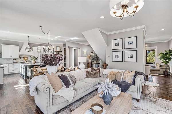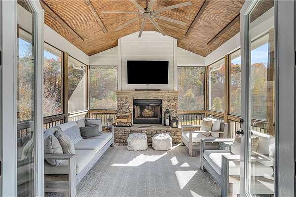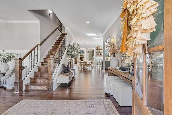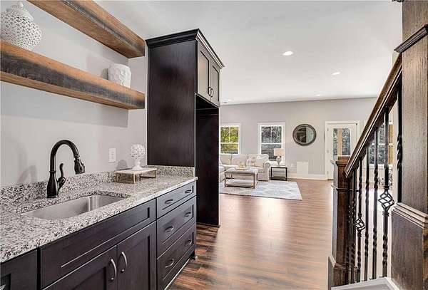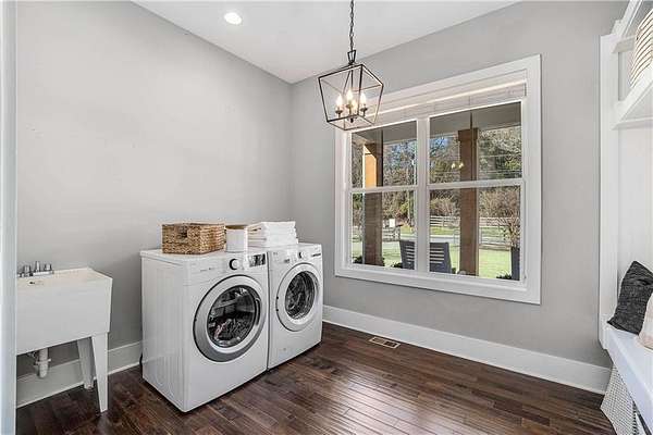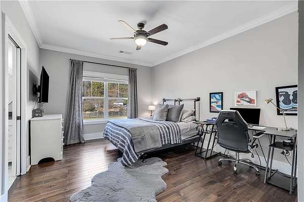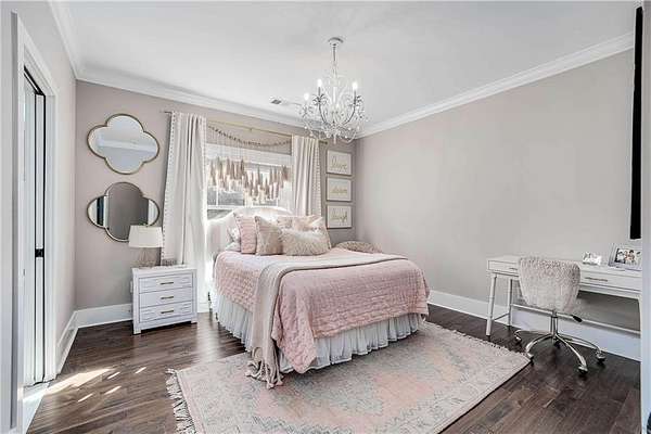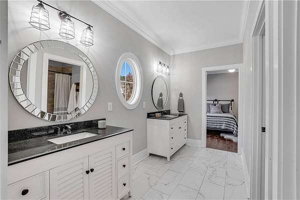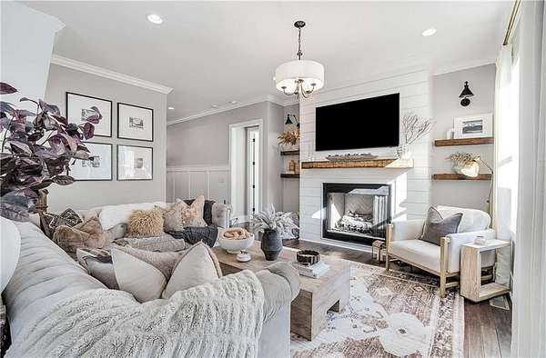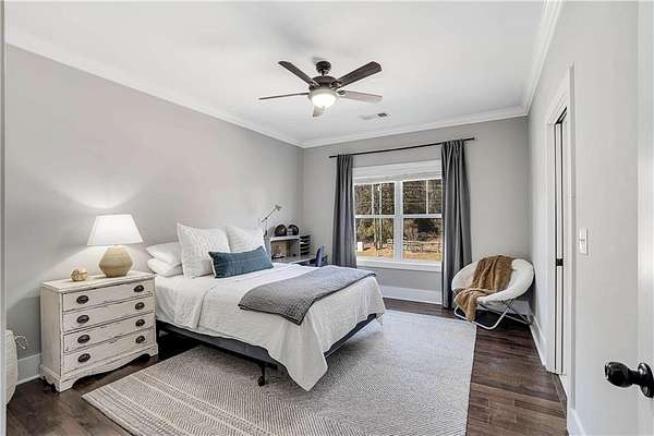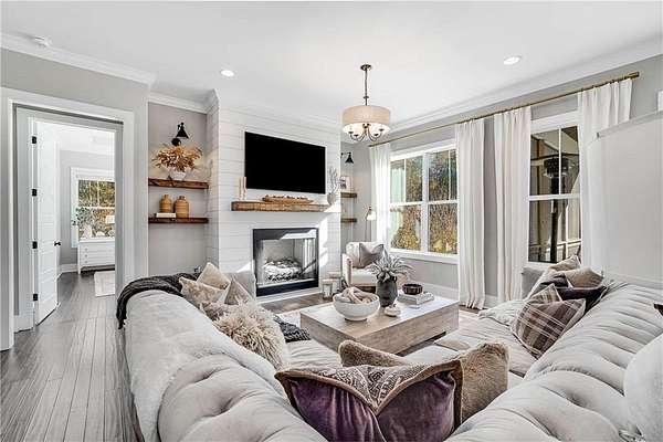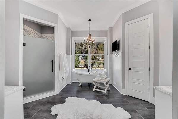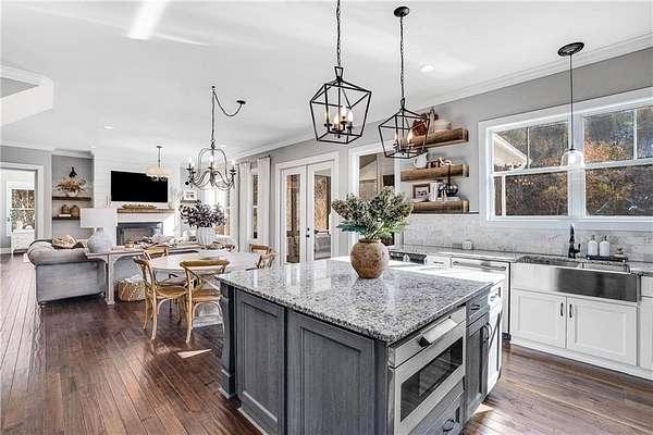 Wow! Experience refined Southern living in this exceptional Craftsman farmhouse on three lush acres in Johns Creek, offering the peaceful feel of the countryside right in the middle of North Atlanta! This beautiful 2018 custom-built 5 bed, 4.5 bath, primary-on-main, 3-car garage home features an inviting traditional farmhouse front porch, gleaming hardwoods throughout, high ceilings, and more! The main living level includes a formal dining room, cozy fireside family room, fabulous vaulted, covered screened porch with stone fireplace, and the updated heart-of-the-home, eat-in kitchen complete with island, stainless appliances, beverage cooler, walk-in pantry and adjacent breakfast area, all overlooking the private pastoral landscape of the backyard! The main level also includes the spacious primary suite with trey ceiling detail, dual closets, and large updated ensuite bath with separate vanities, walk-in shower, and clawfoot soaking tub! Upstairs, you'll find 3 sizable guest bedrooms, bonus room, one ensuite bath, and a Jack & Jill bath. The full finished daylight walk-out terrace level includes an additional family room/multi-purpose space, media room, kitchenette, guest bedroom, full guest bathroom, and lots of unfinished storage space! Outside, in addition to the covered screened porch, you'll find a deck on the main level -- perfect for grilling, a lower level patio, acres of flat, tree-lined backyard ready for you to enjoy, and a convenient storage shed! Located within walking distance to Newtown Park and just minutes from Georgia 400, premier shopping, award-winning schools, and top-rated restaurants, this property delivers the ultimate Johns Creek lifestyle!