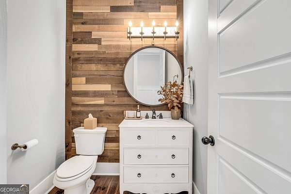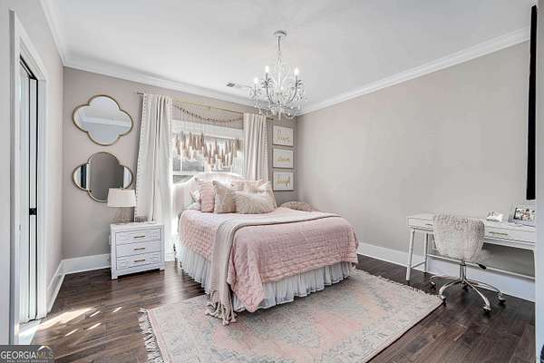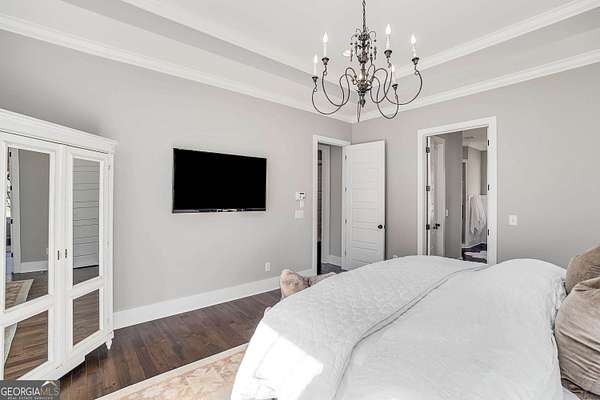 Wow! Experience refined Southern living in this exceptional Craftsman farmhouse on three lush acres in Johns Creek, offering the peaceful feel of the countryside right in the middle of North Atlanta! This beautiful 2018 custom-built 5 bed, 4.5 bath, primary-on-main, 3-car garage home features an inviting traditional farmhouse front porch, gleaming hardwoods throughout, high ceilings, and more! The main living level includes a formal dining room, cozy fireside family room, fabulous vaulted, covered screened porch with stone fireplace, and the updated heart-of-the-home, eat-in kitchen complete with island, stainless appliances, beverage cooler, walk-in pantry and adjacent breakfast area, all overlooking the private pastoral landscape of the backyard! The main level also includes the spacious primary suite with trey ceiling detail, dual closets, and large updated ensuite bath with separate vanities, walk-in shower, and clawfoot soaking tub! Upstairs, you'll find 3 sizable guest bedrooms, bonus room, one ensuite bath, and a Jack & Jill bath. The full finished daylight walk-out terrace level includes an additional family room/multi-purpose space, media room, kitchenette, guest bedroom, full guest bathroom, and lots of unfinished storage space! Outside, in addition to the covered screened porch, you'll find a deck on the main level - perfect for grilling, a lower level patio, acres of flat, tree-lined backyard ready for you to enjoy, and a convenient storage shed! Located within walking distance to Newtown Park and just minutes from Georgia 400, premier shopping, award-winning schools, and top-rated restaurants, this property delivers the ultimate Johns Creek lifestyle!