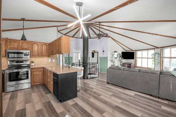 Welcome to your own private retreat in beautiful Corcoran! 2508 square foot Home plus an additional home with 665 finished square feet and main level living! This custom-built home sits on a wooded and secluded 3.04-acre lot-just 5 minutes from I-94 for an easy commute and close to everything Maple Grove has to offer. The main home upper level offers 2 bedrooms, 1 full bathroom, upper level Living Room with vaulted ceilings and a stunning sun porch. Great kitchen creates an open feeling! The lower level has a Family Room with electric fireplace, another bedroom, office and a Family Room. There is also a laundry room. This is a unique layout that blends character and comfort. Promise you have never seen anything like it! It also has a attached oversized 2 car garage. You'll love the updates throughout, including remodeled bathrooms, new lighting, new upper level flooring and new carpet downstairs. Down a short wooded path, you'll find a fully renovated second home with 2 bedrooms, 1 bath, full kitchen and a Living Room. You will love the oversized, heated 2-car garage with laundry, and its own private driveway-perfect for rental income, guest, or multi generational living. A truly special property combining privacy, flexibility, and a great location!