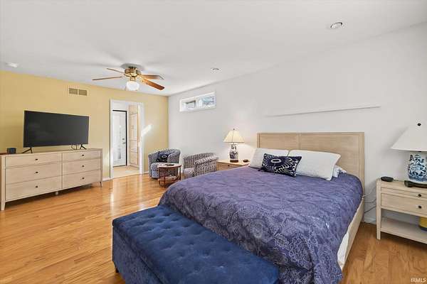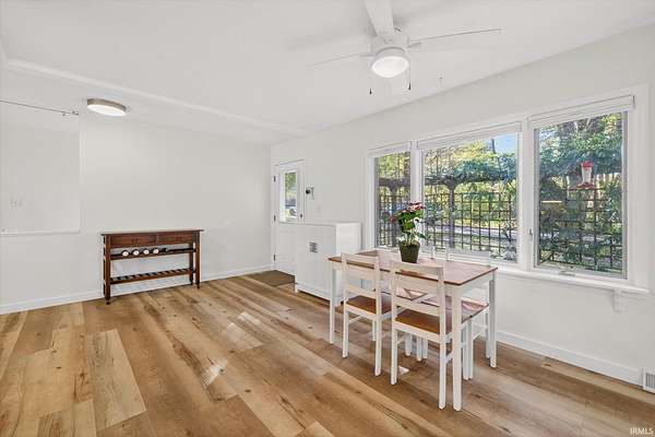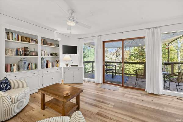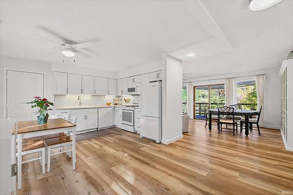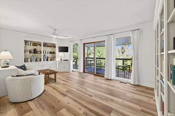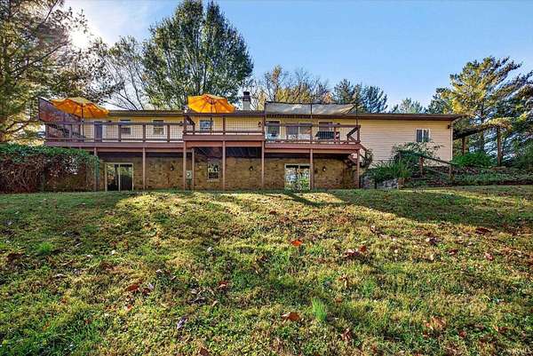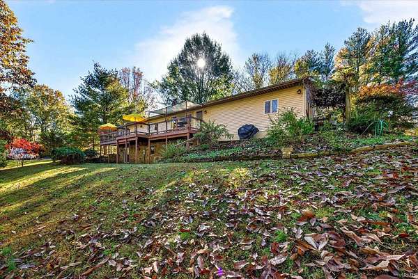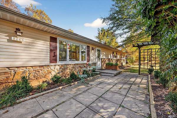 A great find, this ranch over walkout basement with attractive partial stone exterior offers the perfect blend of yard space for those who love to garden, surrounded by mature trees offering ultimate privacy. Outside you'll find lots of perennial plantings, a trellis with wisteria and stone patio space. On double lot with nearly 2 acres, there's lots of sunny garden spots and a potting shed with rain barrel. The backyard is generously sized and could be fenced in. Inside you'll find an open floor plan with lots of windows overlooking the yard and trees. The newly remodeled kitchen offers an eat in style dining space, or move the dining area towards the back of the home alongside the living room for even more spectacular views. There is a slider door offering a large deck space for alfresco dining with multiple seating area options and space for a grill. There is a main level primary suite with double closet doors and private bath with lots of natural lighting. Also on the main level are 2 additional bedrooms and a full bath. The main floor offers newly installed large plank vpl flooring and trim in the kitchen, living room and hallways and hardwood flooring in the bedrooms. Downstairs you'll find a generous floorplan with multiple configurations. There is a family room with a woodburning fireplace, recreation room, home office or gym area and a unique 4th bedroom potential with water and electric for kitchenette, canning room or craft room. (Previously used as a ceramics room with a kiln) There is also a 3rd full bath with jetted tub. The basement offers two slider patio doors that walkout onto a covered concrete patio space. The attached 2 car garage is newly insulated and heated, offering great storage. There are numerous updates and a must see for those wanting privacy and a convenient location. The neighborhood itself offers rolling topography, unique homes and large lots. Located on Bloomington's eastside, you won't find a better location for popular spots like Brown County State Park for hiking and fishing, Lake Monroe for boating and fishing, and a stones throw to Indiana University and downtown Bloomington IN. Utility options include high speed internet for those needing to work remotely. Washer and dryer can be reconfigured to main level if desired.