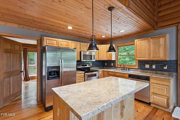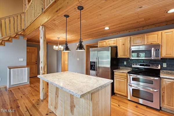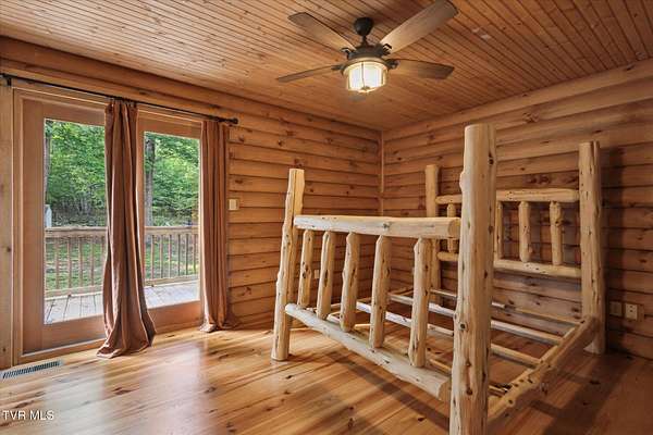 Welcome to your private Appalachian retreat-45 acres of peace, privacy, and possibility. Tucked behind a long gated drive and surrounded by mature timber, this log-sided home blends rustic charm with modern comfort in a setting that feels worlds away, yet sits just minutes from Abingdon, Bristol, and public access to the North Fork Holston River. With ample space and fertile land, this property also offers exciting potential for a mini-farm, allowing you to cultivate gardens, raise livestock, and enjoy a sustainable lifestyle. Built in 2012 with craftsmanship and character in mind, the home features 3 bedrooms, 2.5 baths, a vaulted living room, and warm knotty pine floors throughout. Tongue-and-groove ceilings rise above cozy spaces accented by interior half-log siding and a handcrafted log staircase made by a local artisan. A finished basement offers the perfect spot to unwind by the wood-burning stove. Step outside and you're immersed in nature: watch goldfish swim in the backyard pond, gather around the firepit, or explore trails that wind through your own woods-ideal for hunting, hiking, or ATV riding. The land is perfect for a mini-farm, with fenced areas great for pets or small farm animals, and the flat yard offers plenty of room for gardening or planting fruit trees. Across the road, public river access invites kayaking, tubing, fishing, or just a peaceful walk. You're only 15 miles from historic Abingdon, 19 miles from the Bristol Casino, and 7.6 miles from the Mendota Trail-a 12.5-mile scenic rail trail. Plans by a local architect for a 1,200+ sq ft addition are already complete, making expansion seamless should you need more room. Whether you're looking to escape, expand, or simply enjoy the mini-farm lifestyle, this home offers a rare opportunity to live close to nature without giving up the comforts of home.