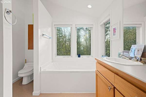 Country living meets city convenience on this stunning 1.95-acre park-like retreat in the coveted Skyline neighborhood! Perched along the scenic West Hills ridge, Skyline offers a peaceful, serene escape with forested privacy, while providing easy access to downtown Portland, Beaverton, Hillsboro, and nearby amenities. Residents enjoy the perfect blend of rural tranquility and urban proximity, with a small-town feel enhanced by local spots like the iconic Skyline Restaurant for post-hike burgers and valley vistas.Bordering one of the nation's largest urban forests-Forest Park-this area is a nature lover's paradise. Forest Park spans nearly 5,200 acres with over 80 miles of trails for hiking, biking, running, and wildlife spotting amid towering Douglas firs, bigleaf maples, ferns, and diverse native flora and fauna. It's a critical green refuge right in the city, offering everything from easy canyon walks to epic ridge traverses, all without leaving Portland's boundaries.This charming 1939 (renovated) single-family home delivers 3 bedrooms, 3 baths (2 full + 1 half), and 2,120 sq ft of timeless appeal. Warm fir and hardwood floors, thoughtful built-ins, and abundant natural light greet you inside. The spectacular vaulted-ceiling master suite is a true oasis-featuring a huge walk-in closet, double vanity, and luxurious soaking tub. The main level flows seamlessly with generous kitchen storage and easy access to a spacious hardwood deck ideal for outdoor enjoyment.Downstairs, a versatile basement includes laundry and direct access to a fenced dog yard. Ample garage and overall storage add practicality.Skyline Elementary and Lincoln High School school district. A rare gem blending historic character, privacy, hillside serenity, and endless outdoor adventure-this private retreat captures the true essence of Portland's West Hills lifestyle!