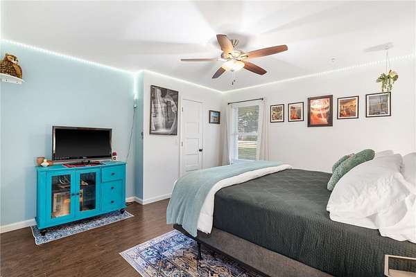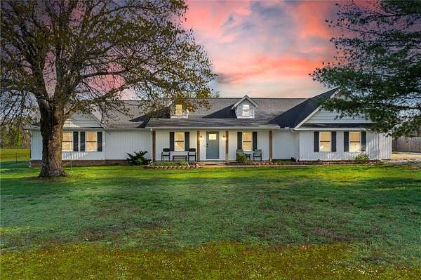 Welcome to The Bentonville Trailside Homestead, a beautifully curated modern farmhouse where wide-open country living meets city convenience. Located 15 minutes to the Bentonville Square, easy access to I-49, and only .5 miles to the Snowbird Trailhead and Back 40 Trail System, this property truly has it all. Set on acreage with sweeping Ozark skies, this home features spacious living areas, a fully equipped kitchen, and a game room perfect for gatherings. A large attached garage and a detached garage offer exceptional storage and workspace, while a cooled shed adds a versatile bonus space for hobbies. Outside, enjoy a private pool, expansive patio, fire pit, and sunset views. Mountain biking, country hobby living, and city convenience all in one. This is the lifestyle property families dream about. Offered fully furnished and operating as a successful short-term rental, it's also a turnkey investment opportunity. Please note: the home has been remodeled to have 4 bedrooms, but there is a 2 bedroom septic system.