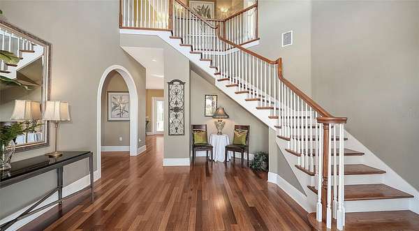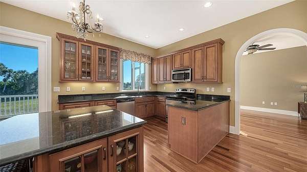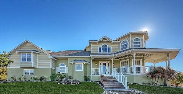 Terra Ceia, also known as Heavenly Earth, is the name of the State Archaeological Site of the Madeira Bickel Mound. This remarkable custom-built home, which has remained high and dry despite the 2024 storms, offers 4,055 square feet of air-conditioned space and 5,641 square feet of wraparound porches, screened lanai, and three open-air decks. It is perfectly situated on 1.66 acres of private uplands with a fenced yard. A decorative electric gate opens on your command, inviting you to stay and observe the natural bird habitat in an artesian pond. A private elevator takes you to the main levels of this spacious and open home, featuring soaring ceilings, hardwood floors, all-wood cabinets, a gas fireplace, granite countertops, and arched entries. The grand foyer with a wraparound staircase will also take you to all the well-used spaces in this home, which include two offices and a morning room. The three spacious bedrooms are all en suite, with the master suite offering a large jetted tub, a large separate walk-in shower with its own water heater, double sinks, a dressing vanity, and a spacious closet. A fabulous air-conditioned observatory with a wet bar, open deck, offers a 180-degree view of nature and Terra Ceia Bay. Enjoy the convenience of a community boat ramp. You will appreciate the side entry oversized garage with ample storage space. Located in a quiet yet convenient area, you will experience the Old Florida feeling of relaxation as you explore this 4,200-acre protected land surrounding the island. Recent updates include(Roof and gutters 2025, exterior painted, electric gate motor replaced)