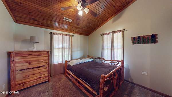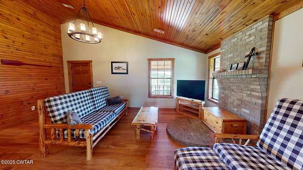 Escape to your own private retreat with this stunning 5-bedroom, 3-bath log cabin nestled on 245 secluded acres of pristine land. This property offers the perfect blend of rustic charm and modern comfort, featuring a spacious cabin with warm wood finishes, a fully equipped shop, and a separate guest house for family or visitors. Outdoors, you'll find a stocked lake, ideal for fishing or simply relaxing by the water's edge. The land is a sportsman's paradise, boasting prime whitetail deer and turkey hunting opportunities along with abundant wildlife. Towering stands of mature timber add both natural beauty and long-term value to the property. Whether you're seeking a hunting lodge, family getaway, or a full-time residence with room to roam, this rare offering combines seclusion, recreation, and timeless log cabin living in one exceptional package.