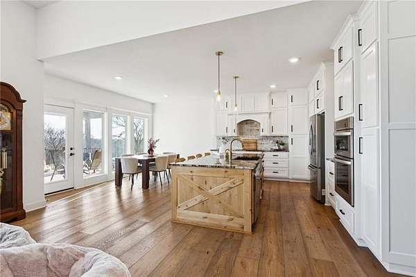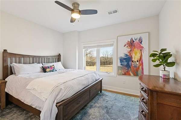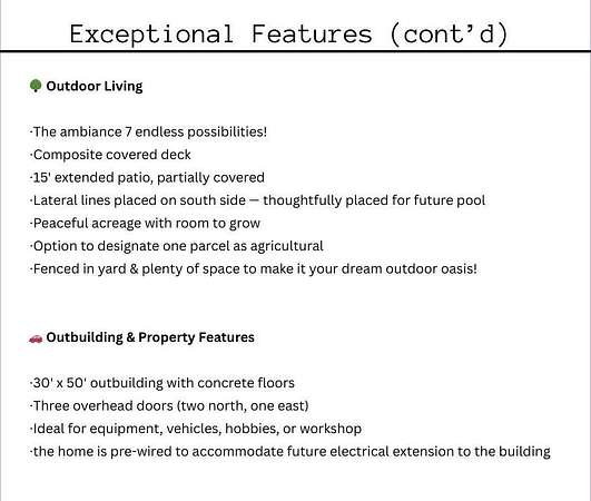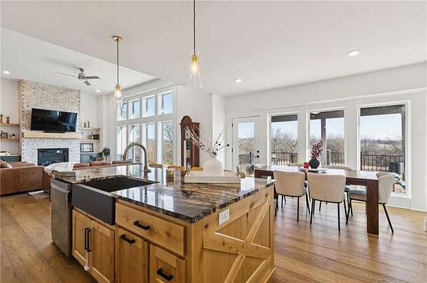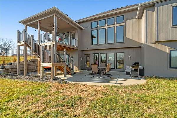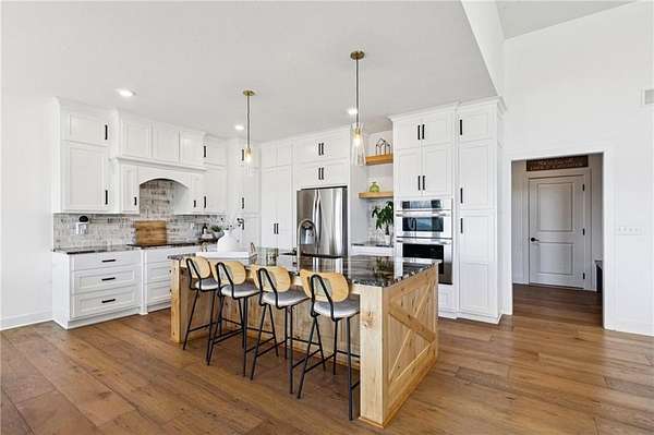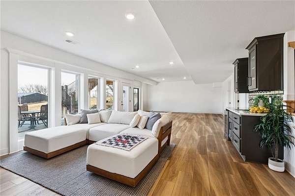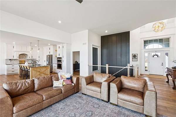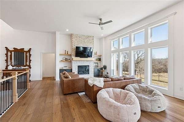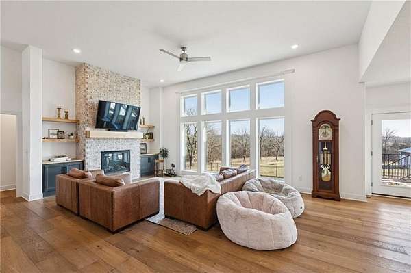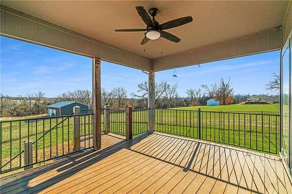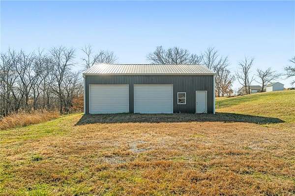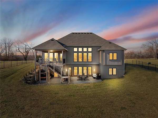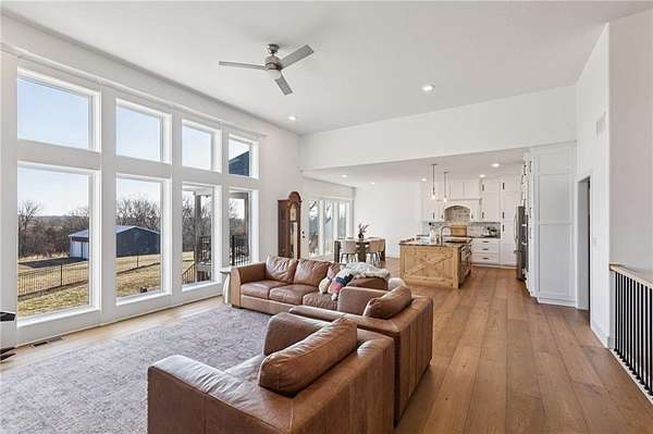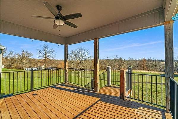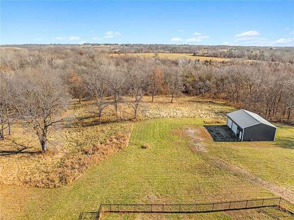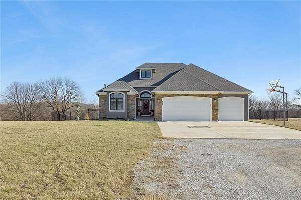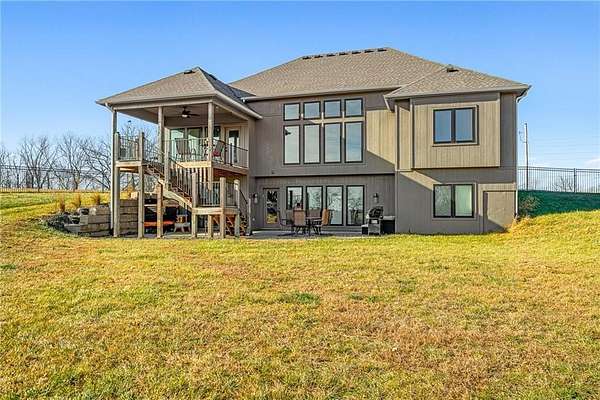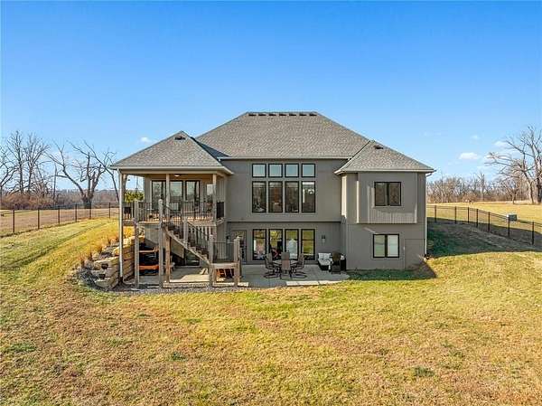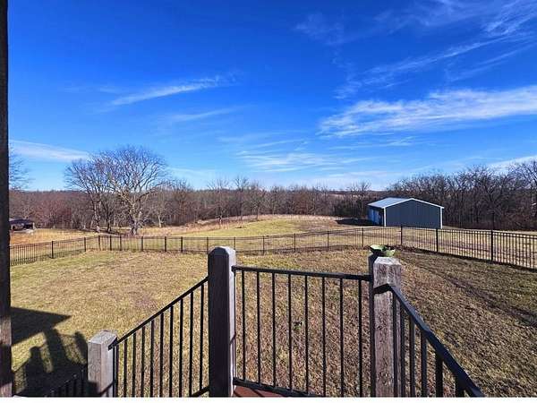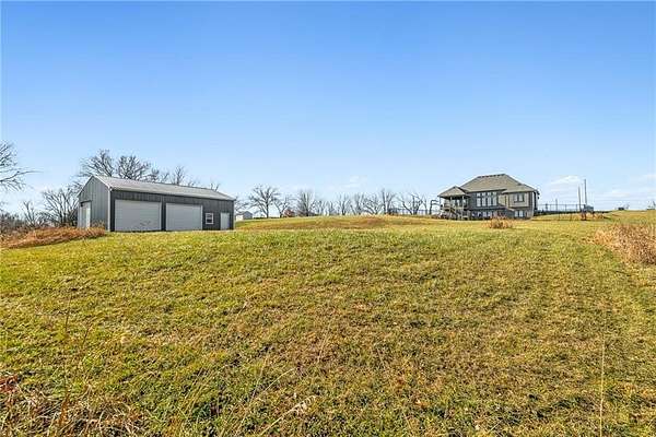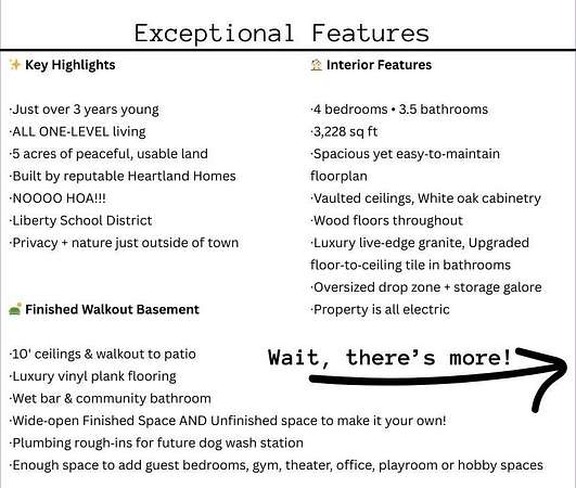 Stop the Car! * Just over 3 years young * ALL ONE LEVEL living * 5 acres * Liberty! Built by reputable Heartland Homes: perfect blend of modern luxury, peaceful acreage, and everyday convenience with - NOOOO HOA!!! Thoughtful upgrades throughout. 5 acres JUST outside of town, get the privacy and nature without sacrificing quick access to amenities. 4 bedrooms, 3.5 baths, and 3,228 sq ft-a floorplan that's spacious enough to live comfortably yet easy to maintain. The craftsmanship shines from the moment you walk in with so many upgrades: vaulted ceilings, white oak cabinetry, wood floors throughout, and luxury live edge granite, upgraded floor to ceiling tile in the bathrooms just to name a few. Keep the home clutter free with oversized drop zone & storage galore. The finished walkout basement is a dream space beyond the 2 bedrooms - the rec area is wide open with 10' ceilings, luxury vinyl plank flooring, a wet bar, and endless flexibility. Add bedrooms, create a home gym, design a theater. The possibilities are wide open with the finished AND unfinished space. In fact, plumbing rough-in's already installed for a future dog wash station. Impressive Outdoor living with composite covered deck, a 15' extended patio also partially covered, and plenty of room to add a future pool thanks to lateral lines thoughtfully placed to the south side. The property includes two tax parcels under one legal description, giving you the option to designate one as agricultural if desired. Property is all electric. A huge bonus: the 30' x 50' outbuilding with concrete floors-perfect for equipment, hobbies, vehicles, or a workshop. Has 3 overhead doors (two on north and one on east). Located in the sought after Liberty School District, this home offers the rare combination of acreage, upgrades, convenience, and freedom. And yes... no HOA!!!