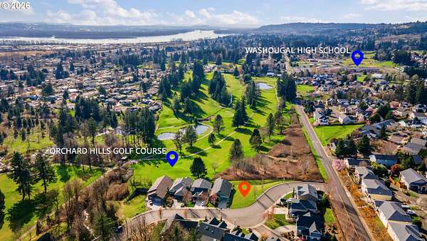 Discover this rare opportunity, overlooking Orchard Hills Golf & Country Club in Washougal, WA. This .14-acre corner lot offers unobstructed views of the lush golf course, providing a tranquil setting with only one neighboring property to the south. The triangular adjacent property North is not buildable, and maintained by the city of Washougal. All utilities are conveniently ready, from the street, primed for building your dream home. As the last lot available in this well-developed neighborhood, make haste, identify your builder of choice, and get your dream build underway. This lot is perfectly suited to a home plan with a daylight basement. Enjoy quick and convenient access to Hwy 14, Portland International Airport, an abundance of scenic hiking trails and outdoor activities, and all your comprehensive shopping necessities. Embrace a lifestyle of leisure and connectivity in a coveted location.