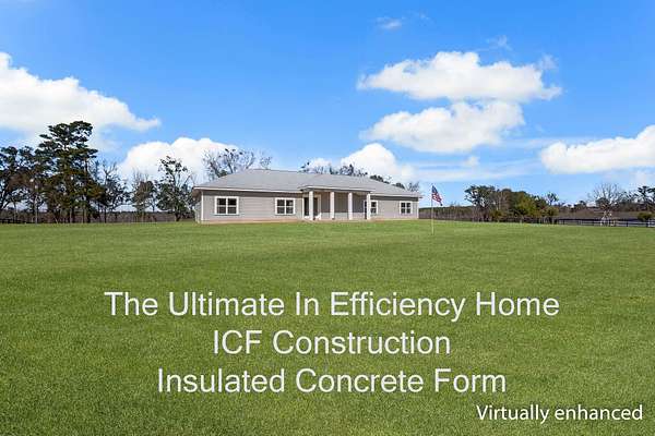 (One or more photos has been virtually staged) Custom hurricane-resistant/efficiency home on 3.6 private acres in a gated equestrian community, just 17 miles east of Tallahassee and 1 mile to I-10 (Exit 217). Built in 2013, this 2,112 sq ft home features 4 bedrooms, 3 full baths, and 9' ceilings throughout. Constructed with Nudura ICF 12" insulated concrete exterior walls for superior strength, energy efficiency, and sound insulation. All-electric home with avg. electric bill approx. $100/month. New roof 2024. Interior highlights include large closets, walk-in shower, sun tunnels in 2 baths and laundry, ultra-quiet Panasonic vent fans, and stand-up attic with full walkway and lighting. Oversized garage with three 8' doors, built-in shelving, Deese Elite floor coating, water tank for freeze protection, and generator. Exterior features include paved 12' x 240' driveway, automated underground irrigation to fruit trees, outdoor sink, underground water line, floodlights, motion sensors, camera and security systems. Private well and septic. Community offers paved private roads, 1.7-mile walking loop, and nearby horse facilities.