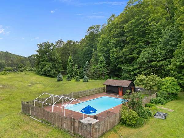 Hidden away, this secluded 18 acre rolling landscape of quiet meadow and woodland is minutes to town, easy access to I-91. Skiing, lakes, river/water fun, hiking/biking Or, stay at home in south facing sanctuary designed for easeful living and enjoy the shimmering pool, huge gourmet kitchen with Viking range and 2 walk-in pantries, creating wonderful memories for friends and family. Plenty of room for everyone in five bedrooms (and of course 7 bathrooms), a choice of large or cozy living rooms and an office to work from home. Toast your toes at either fireplace or soap stone wood stove. Invite your circle of friends to yoga, parties or create a media room in the huge, finished walk-out basement family room, plumbed and wired for a second kitchen, with 1/2 bath, easily converted to extended family suite. 47x21 bonus room with skylights and ample windows overlooking the grounds is perfect for play/gym space, artist studio, etc. 3 car detached heated, finished garage/workshop with storage above. Create a cross-country ski track for moonlight nights. Watch for fireflies in the meadows and see the forest creatures explore their world. A one-of-a-kind property with so much to love; solid, expansive architecture, two staircases, windows everywhere, gleaming wood floors and well positioned, dimmable lighting, bringing together classic and fun, this home was designed for those who love organization with oodles of storage space. The heart of Vermont is here!