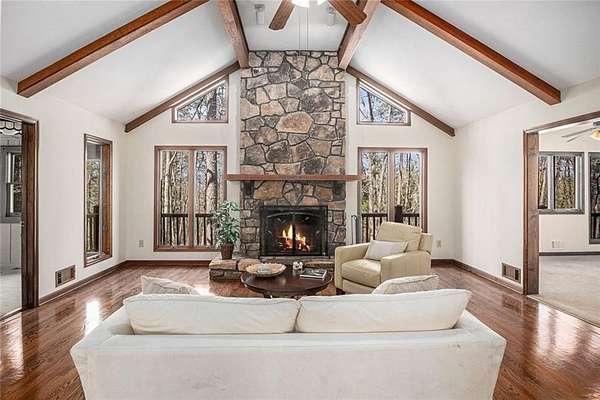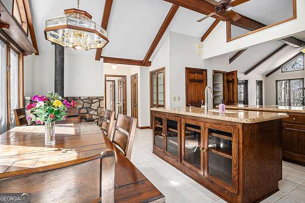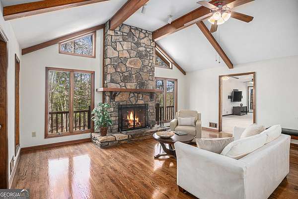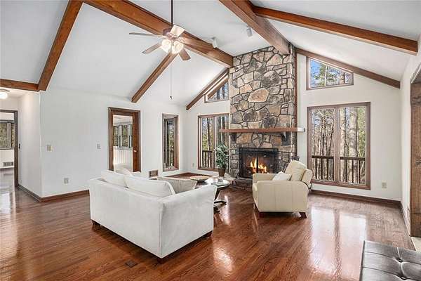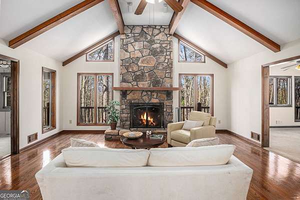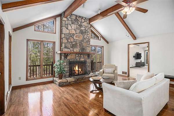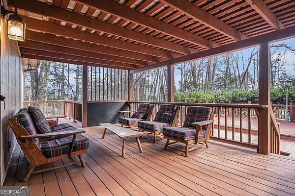Nestled on a serene 3-acre lot in North Lumpkin County, this exquisite 3,694 sq. ft. residential property, offers a perfect blend of privacy, luxury, and investment potential. Built in 1983, this 3-bedroom, 2-bathroom main home, paired with a charming 1-bedroom, 1-bathroom guest cottage, is ideal for full-time living, a vacation retreat, or a lucrative short-term rental opportunity. Located just 20 minutes from downtown Dahlonega and Cleveland, this property provides easy access to Georgia Wine Country, hiking trails, the Chestatee River, and historic attractions. Main Home Features: Spacious & Inviting Living Areas: The living room, anchored by a cozy gas fireplace, boasts beamed, high, and vaulted ceilings, creating an airy and elegant atmosphere perfect for relaxation or entertaining. Two entertainment rooms, one with a built-in sound system, elevate the experience. Gourmet Kitchen: Designed for functionality and socializing, the kitchen features a large island for culinary creations and casual gatherings, complemented by durable and elegant stone countertops. Luxurious Primary Suite: The primary bedroom is a private retreat with a skylight flooding the space with natural light and an ensuite bathroom featuring a modern walk-in shower and two walk-in closets. Comfort & Convenience: Enjoy multiple heating options (gas fireplace, wood-burning stove, and gas heat), central AC, and a whole-home automatic generator for peace of mind. A dedicated laundry room adds organization and ease. Outdoor Living: A wrap-around deck, covered patio, and sun deck offer ample space to soak in the peaceful, nature-filled surroundings. A 2-car garage and 1-car carport provide plenty of parking. Guest Cottage: Fully Equipped & Private: This charming 1-bedroom, 1-bathroom cottage includes a full kitchen, laundry, wood-burning stove, and a private picnic area. Fully furnished, it's ready for immediate use. Versatile Potential: Perfect for rental income, multi-generational living, or accommodating guests in style. Property Highlights: Prime Location: Enjoy private neighborhood access to the Chestatee River for fishing, tubing, and swimming, plus proximity to wineries, hiking trails, and historic Dahlonega attractions. Nature & Privacy: Surrounded by abundant wildlife and serene landscapes, this 3-acre retreat offers a peaceful escape from the hustle and bustle. Investment Opportunity: With its spacious main home, versatile guest cottage, and desirable location, this property is ideal for full-time residents, vacationers, or investors seeking short-term rental income. Don't miss this opportunity to own a refined and versatile retreat in the heart of North Lumpkin County. Whether you're dreaming of a forever home, a weekend getaway, or a smart investment, this property delivers it all. Text 1424307 to 35620 for more information!
