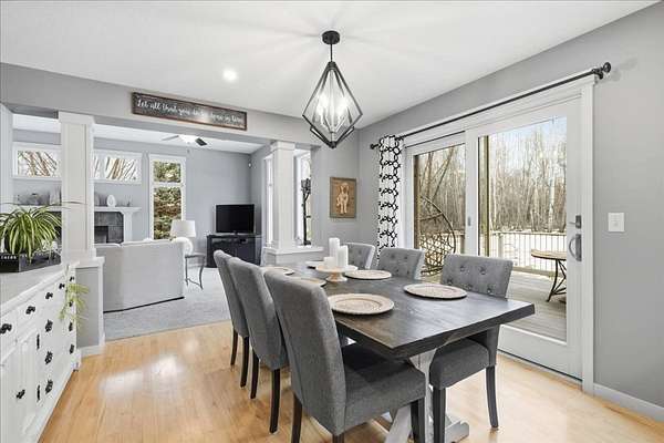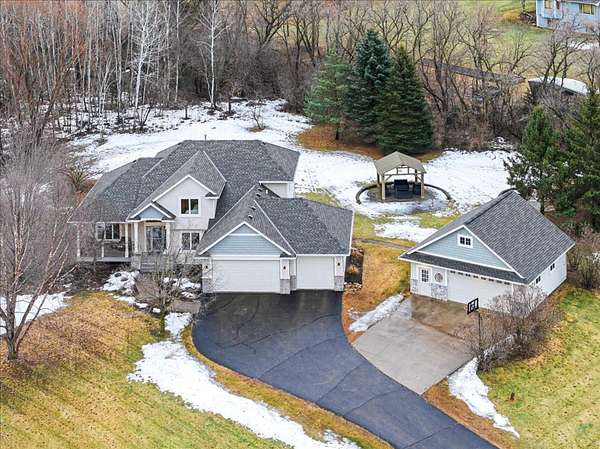Outdoor living is equally impressive. Enjoy the serenity of the expansive deck and two patios, complete with a gazebo and fire pit--perfect for entertaining guests or unwinding in a peaceful natural setting. An irrigation system helps maintain lush landscaping and vibrant gardens, while a newer roof (replaced within the past two years) adds peace of mind. The Invisible Fence system offers pet containment options for pets. A matching heated two-car detached garage with attic trusses offers endless possibilities, whether used as a workshop, studio, hobby space, or additional storage. Despite its private, tucked-away feel, the property is conveniently located just 7.3 miles from downtown Hudson, WI, and only 25 miles from downtown St. Paul, MN--providing an ideal balance of seclusion and accessibility. Outdoor enthusiasts will appreciate being just 2.5 miles from Willow River State Park, featuring over 2,800 acres of recreation opportunities. This move-in-ready home presents a rare opportunity to own a beautifully finished property in a highly sought-after neighborhood. Homes of this caliber are seldom available--schedule your private showing today!