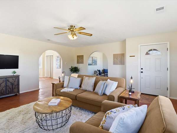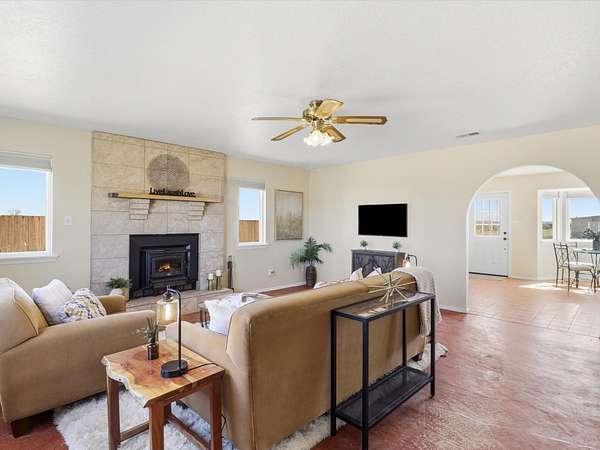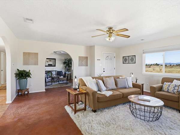 *OPEN HOUSE CANCELLED, offers received* Experience peaceful country living on the quiet outskirts of Moriarty in this securely-gated property set on 2.2 level acres. This well-maintained home offers two bedrooms with a flexible bonus room that can serve as a third bedroom, second living area, office, or dining space. Pride of ownership is evident throughout with quality upgrades and no corners cut. Improvements include a 2019 septic system and water heater, 2020 high-end Brant refrigerated air and furnace, fresh neutral paint, a renovated main bath, and a resurfaced fireplace with new wood-burning stove. An expensive large steel workshop/hay storage/carport structure was added in 2022, enhancing functionality and value. You owe it to yourself to come tour this magnificent home today...