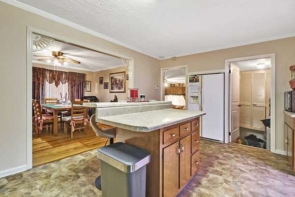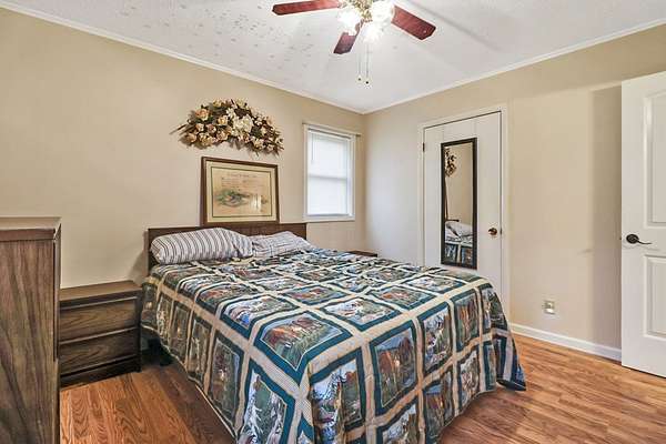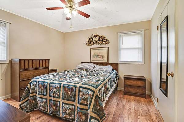 Adorable and full of potential, this charming 2-bedroom, 1-bath home offers comfort, versatility, and room to grow. A spacious bonus room provides endless possibilities--perfect for a third bedroom, home office, or family room to suit your needs. Inside, you'll love the gleaming -inch hardwood flooring and custom wood kitchen cabinets, complete with an island and all appliances conveying. The home also features a generously sized laundry/mud room for added convenience. Step outside to enjoy a covered front porch and open back deck--ideal for relaxing or entertaining. The level yard offers plenty of space for outdoor activities, gardening, or even adding a pool. Additional highlights include a 2-car detached garage, paved driveway, and a dedicated garden area for those with a green thumb. An additional garage could easily converted to a living space for additional family that needs your help, plenty of room to build another homes. Let your imagination take flight and get creative.