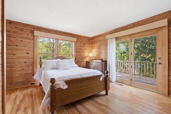 Tucked just outside the city limits of the quaint town of Landrum, this classic log home sits on 8.24 acres with seasonal mountain views, abundant road frontage, and fantastic potential. With 4 bedrooms, 3 full baths, and full basement, it's a rare find for those seeking space, privacy, and room to bring a vision to life. Step inside to hardwood floors that run throughout the home. The main level offers a comfortable layout with a primary suite featuring an ensuite bath and walk-in closet, plus two secondary bedrooms and a full hall bath. Downstairs, a finished walkout basement (with interior access) expands your living options with a great flex room, a dedicated storage room, a full bath, and an extra-spacious bedroom--perfect for guests, multigenerational living, or a home office setup. Outside, horse lovers and hobby farmers will appreciate the 4-stall barn with a tack room, open pastures, and two large equipment bays. A deeded right-of-way off Owls Nest Road provides excellent access to the equipment bays and offers a convenient, flat exit when needed. With over 1,400 feet of road frontage along Highway 14, no restrictions, and no HOA, the property presents excellent possibilities--including potential subdividing along Highway 14 or Owls Nest Road. Property is being sold strictly "as-is, where-is." Bring your ideas and handyman know how--opportunities like this don't come around often. Call today!