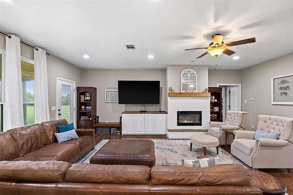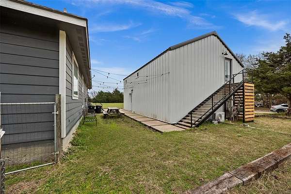 Rare opportunity to own a beautiful country property featuring a detached shop with a private upstairs apartment—perfect for a home office, guest suite, or income-producing potential! Tucked away on acreage in sought-after Van Alstyne, but just a short drive from all city conveniences, this beautifully maintained single-story home offers the ideal blend of peaceful country living and modern convenience. Inside, you’ll find rich wood flooring and an open-concept layout designed for both everyday living and entertaining. The kitchen is spacious with granite countertops, abundant cabinetry, and a large island overlooking the dining area and backyard views. The home extends to a covered back patio with a stunning wood ceiling creating the perfect space to relax or host while enjoying wide-open Texas skies. A true standout feature is the detached metal building with an upper-level apartment or loft (approximately 800 sq ft) complete with a bathroom and kitchenette—creating a “property within a property.” Whether you need a dedicated workspace away from the home, private guest quarters, multi-generational living, or want to explore rental income opportunities, this setup offers flexibility that’s hard to find. The acreage is equally impressive, offering plenty of room for animals, gardening, recreation, or simply enjoying the privacy and space. Additional highlights include a covered carport, extended concrete areas, and a private basketball or pickleball court for at-home entertainment. Schedule a private showing today!