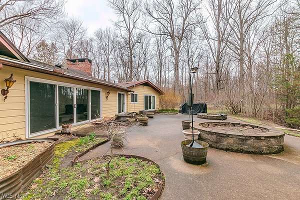Welcome to this sprawling ~3,000 sq. ft. ranch in the highly desirable Kirtland Hills Village, set on over 5 acres of peaceful, scenic land. This serene property truly has it all! Step inside to a stunning living room featuring a cozy wood-burning fireplace, a wall of windows that fills the space with natural light, and sliding doors that open to the back patio and picturesque pond. The updated kitchen boasts abundant cabinetry, granite countertops, and stainless steel appliances, and flows seamlessly into the dining area complete with its own wood-burning fireplace and patio access, perfect for indoor-outdoor entertaining. With its expansive layout, the home also offers a large family room ideal for gatherings or easily converted into a game room, complete with another set of sliding doors to the outdoors. The spacious primary suite is a true retreat, featuring dual closets, private patio access, and a beautifully updated en-suite bath with a tiled shower. Three additional generously sized bedrooms, along with a guest bath, laundry room and a convenient powder room, complete the interior. Car enthusiasts will appreciate the impressive 4-car garage. Outside, enjoy a large patio designed for entertaining, all overlooking a tranquil pond that enhances the natural beauty of the property. Home comes with a whole house generator! Some updates include: Natural gas conversion 2020, Furnace w/UV disinfection and Humidifier system 2020, A/C unit 2020, Water tank 2020, water softener 2020, whole house generator + 200AMP upgrade 2021, Septic 2023, Pond aeration 2022, and Reverse osmosis system 2020. All this and the home comes with a 1-year warranty! Call today for you private showing as this one won't last long! Added benefit Kirtland Hills has no city tax!!