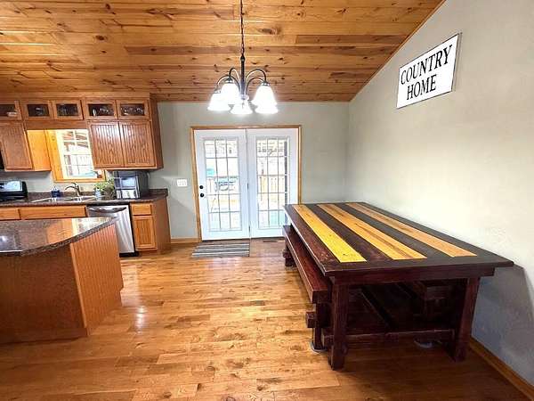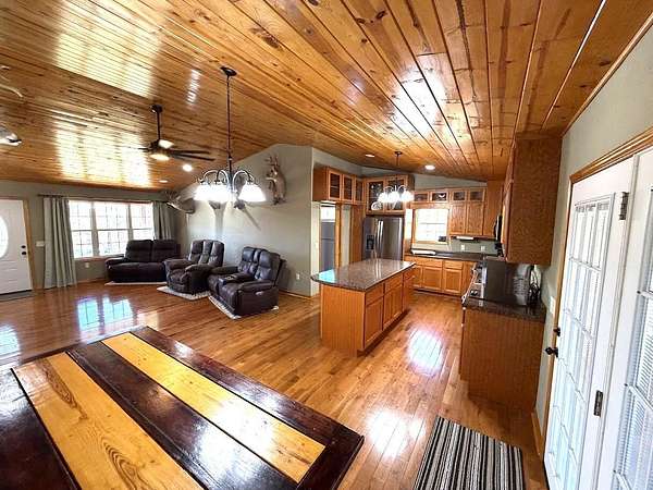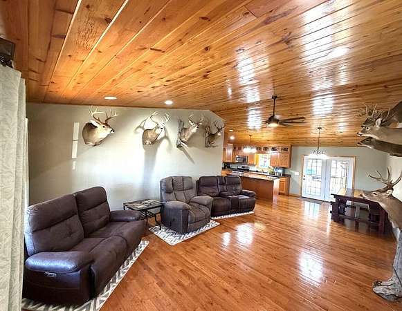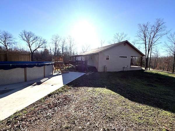 Discover the perfect blend of peaceful country living and everyday convenience with this beautiful 5+ acre m/l property located less than 2 miles from Mountain View, MO. Priced at $389,900, this spacious 3-bedroom, 3-bath home offers comfort, functionality, and room to grow.A welcoming covered front porch sets the tone for relaxed rural living. Inside, you'll find central A/C, outdoor wood heat with electric backup, and the convenience of two laundry areas -- one on the main level and another in the finished basement. The kitchen is both functional and inviting, featuring open cabinetry, an island for additional workspace, and included appliances.The finished basement provides a large family room perfect for gatherings, a non-conforming bedroom or office (no window), a second laundry space with abundant storage, and a spacious safe room for added peace of mind.Step outside and take full advantage of the property's impressive amenities. The 40x32 shop with concrete floors offers excellent workspace, complemented by a lean-to with RV hookup. You'll also enjoy an above-ground pool set on a concrete slab, a fully equipped dog kennel with electric, water, and concrete pad, plus a dedicated garden area. All of this is surrounded by beautiful acreage, giving you plenty of room to work, relax, and enjoy the outdoors.This property truly offers space, versatility, and the quiet lifestyle you've been looking for -- all just minutes from town.