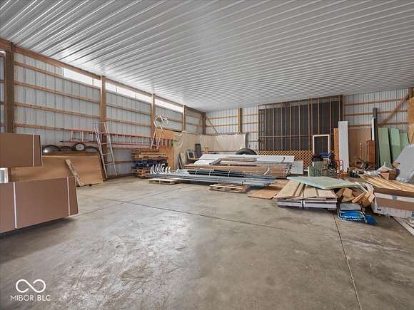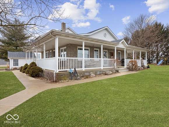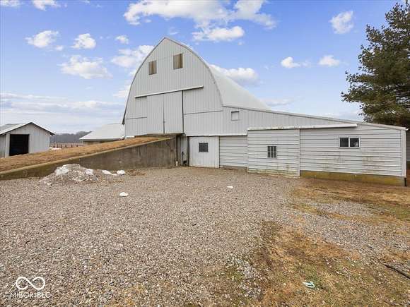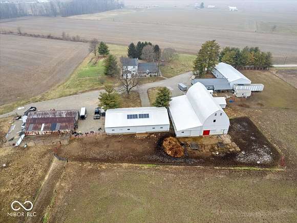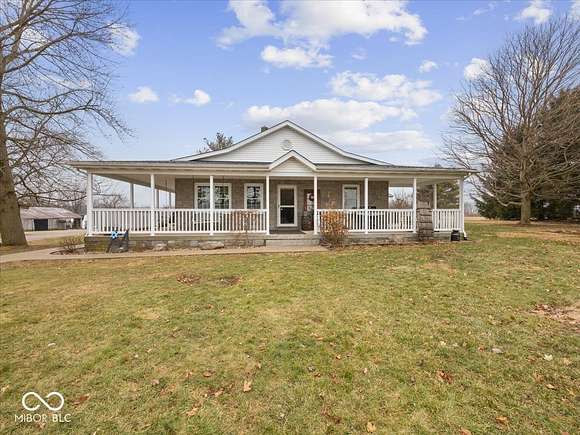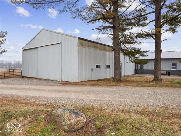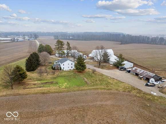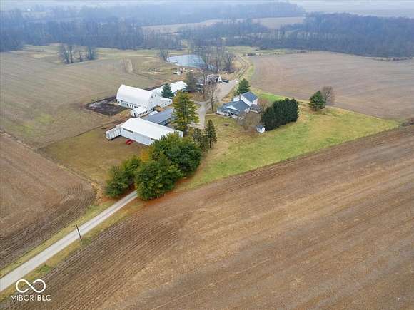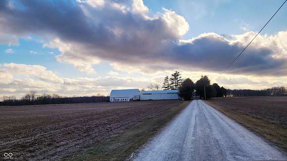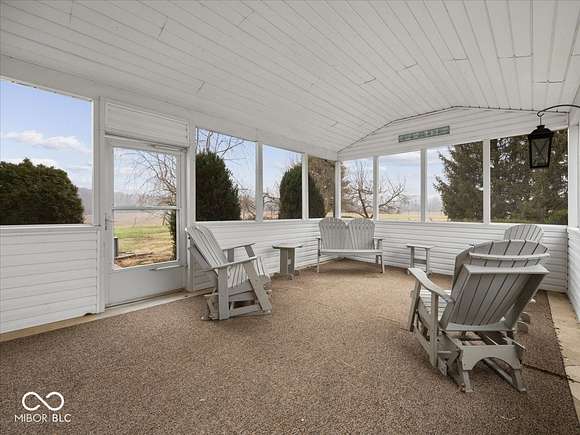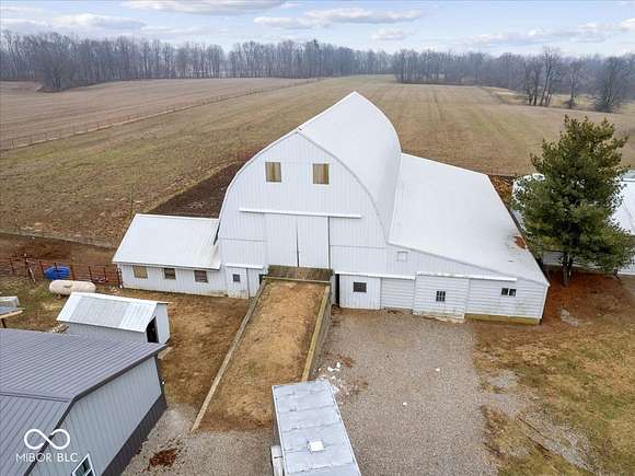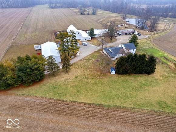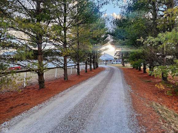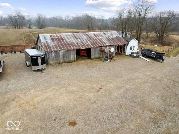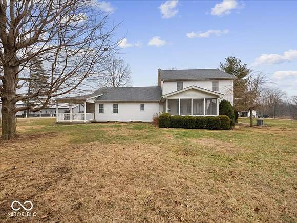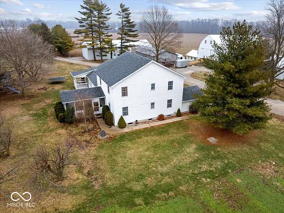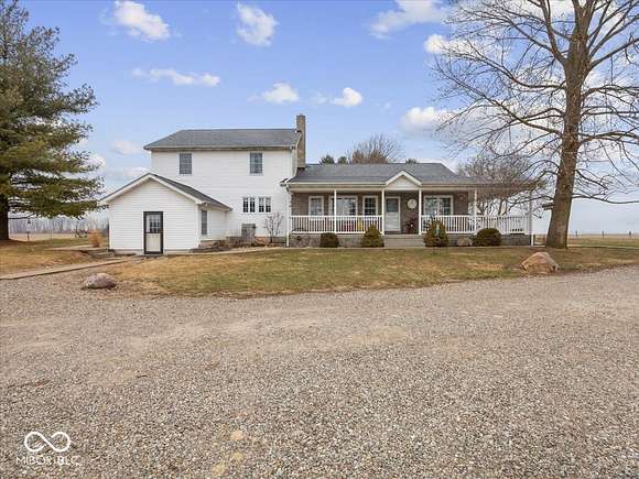 200 AMP ELECTRIC ADDED July 2025, HVAC ADDED Nov 2025 - BY APPOINTMENT ONLY - 29.24+/- acres in southern Rush County just minutes from Troyer's Bakery/Deli, between Greensburg and Rushville is your opportunity to live tucked back off the road on this homestead with multiple barns (one a vintage Sears Roebuck), stocked pond, gas well, established garden area with fruit trees, fenced pasture, approx 10 tillable acres, some woods and more. The house features a wrap around porch, 6 bedrooms, 3 full bathrooms, endless storage cabinets and closets, 2 sinks in the main kitchen, screened porch, large basement areas with egress windows, kitchen cabinets in the basement perfect for canning and gatherings, brand new roof, mudroom entry, in total just over 5300 sqft! The large white metal barn is ~40x90 has concrete floors and large screens made for the slider doors. The 3rd white barn ~46x80 is great for storage of equipment with a concrete floor and a heated room.
