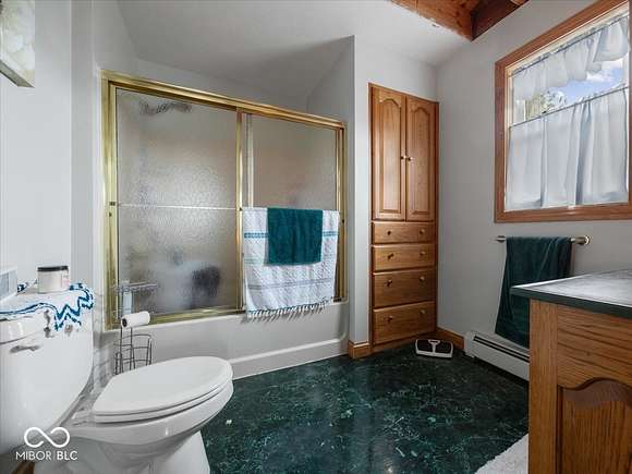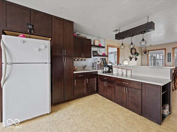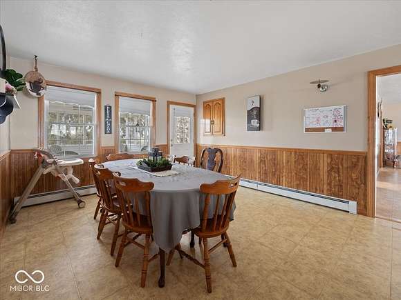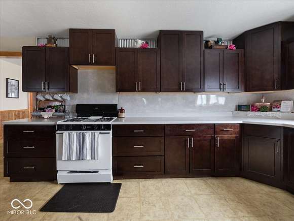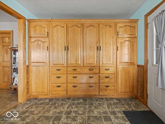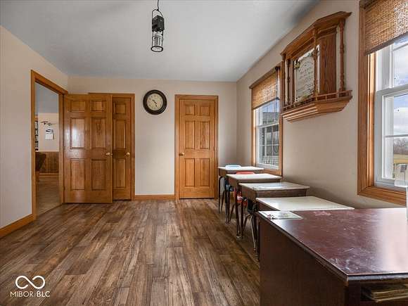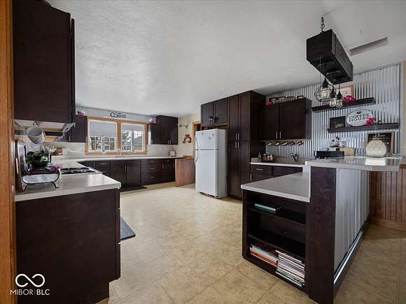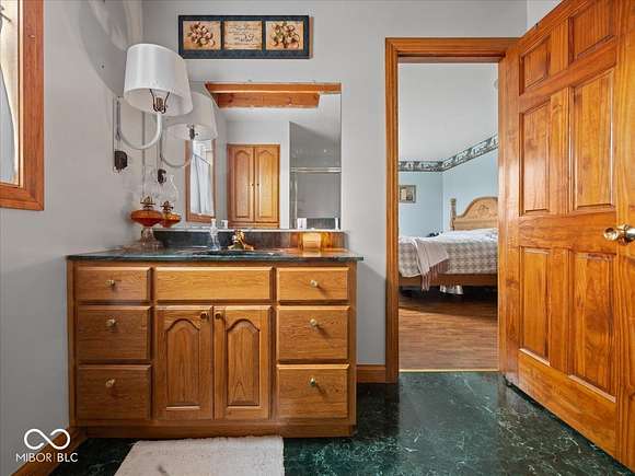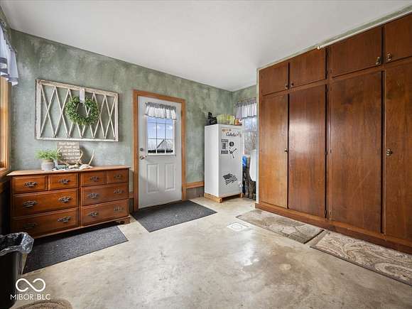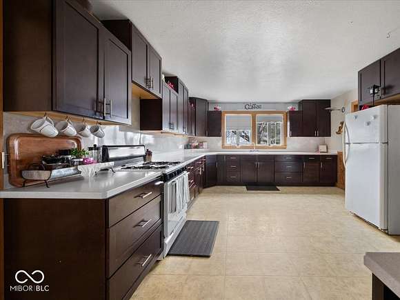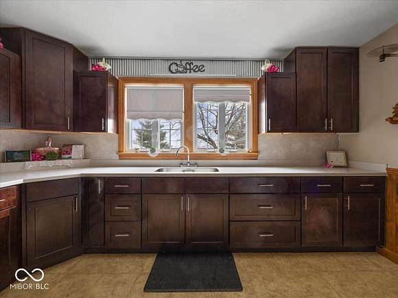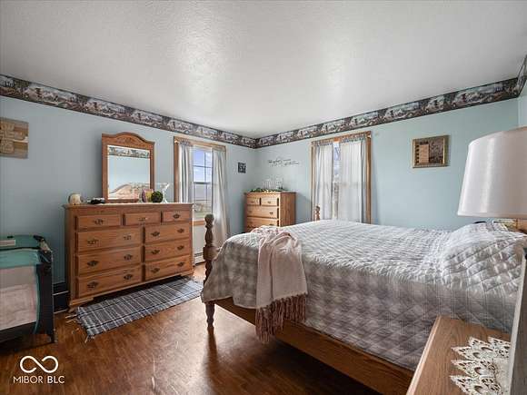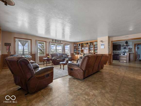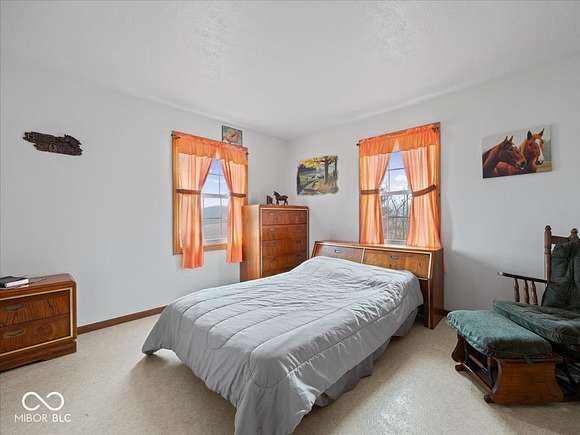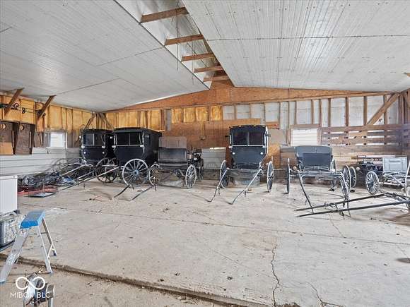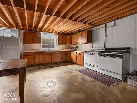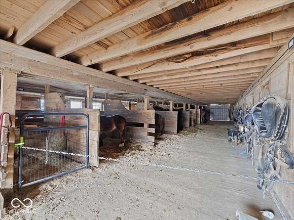 200 AMP ELECTRIC ADDED July 2025, HVAC ADDED Nov 2025 - BY APPOINTMENT ONLY - 29.24+/- acres in southern Rush County just minutes from Troyer's Bakery/Deli, between Greensburg and Rushville is your opportunity to live tucked back off the road on this homestead with multiple barns (one a vintage Sears Roebuck), stocked pond, gas well, established garden area with fruit trees, fenced pasture, approx 10 tillable acres, some woods and more. The house features a wrap around porch, 6 bedrooms, 3 full bathrooms, endless storage cabinets and closets, 2 sinks in the main kitchen, screened porch, large basement areas with egress windows, kitchen cabinets in the basement perfect for canning and gatherings, brand new roof, mudroom entry, in total just over 5300 sqft! The large white metal barn is ~40x90 has concrete floors and large screens made for the slider doors. The 3rd white barn ~46x80 is great for storage of equipment with a concrete floor and a heated room.