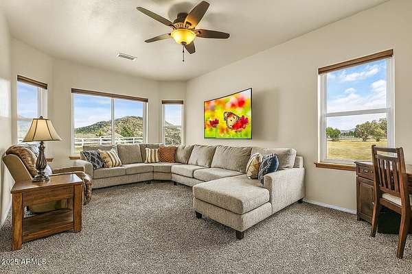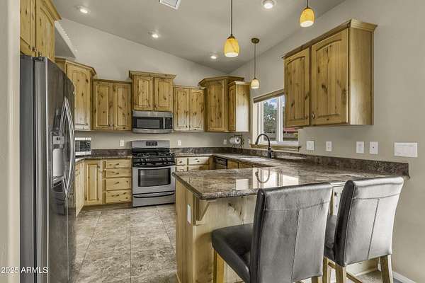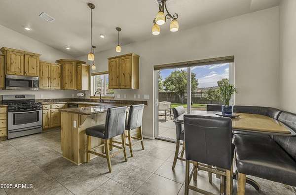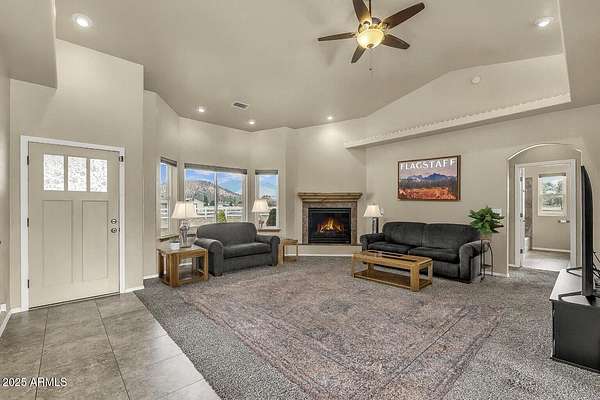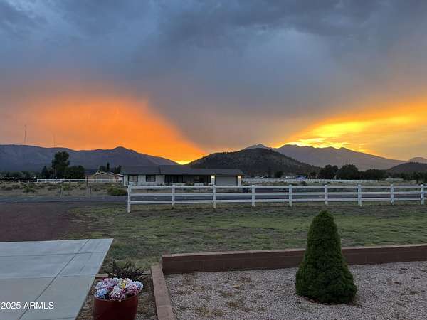 9255 Stardust Trail is a SINGLE LEVEL Stunner in Flagstaff with mountain views and NO HOA! This immaculate 3-bedroom home shows like NEW and offers a rare blend of luxury and comfort. Enjoy breathtaking views from both the front and fully fenced beautifully landscaped backyard oasis on an automatic drip system - perfect for relaxing, gardening, stargazing, or taking in those gorgeous Arizona sunrise and sunsets. The heart of the home features a gorgeous kitchen with knotty alder cabinets, granite counters, and Anderson Low E Windows. Cozy up in the winter to the gas fireplace, and appreciate the convenience of NATURAL GAS at this home. Second Bedroom is like a SECOND PRIMARY BEDROOM. And the spacious and deep 3-car garage is also a terrific feature for this home.