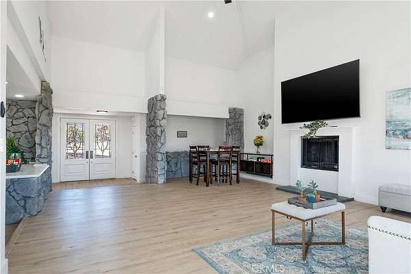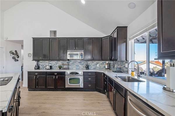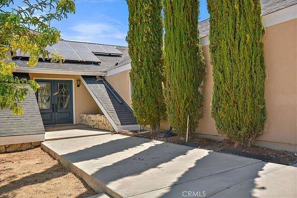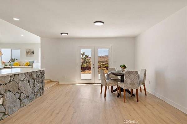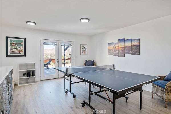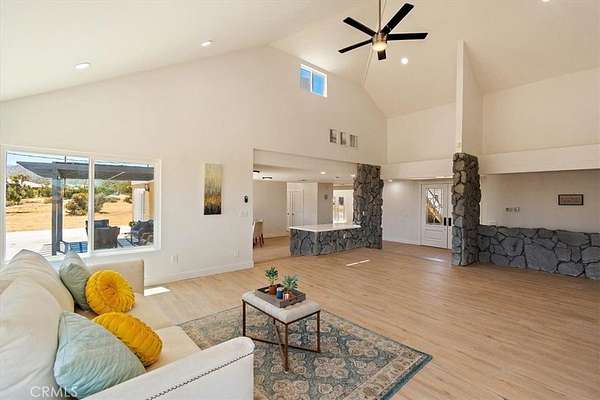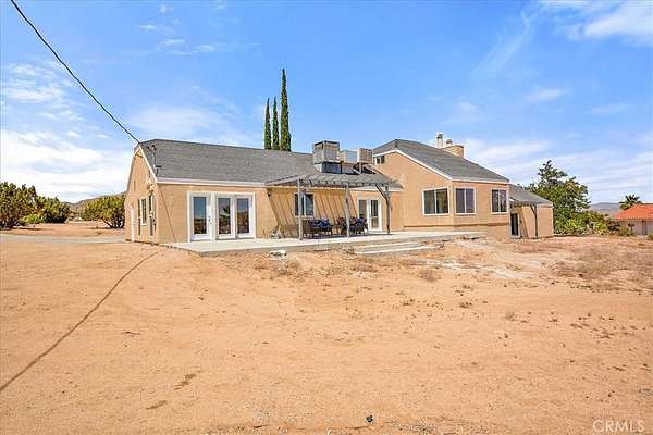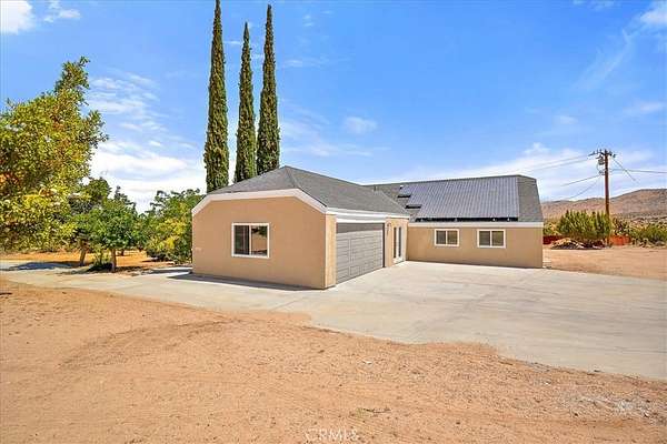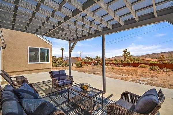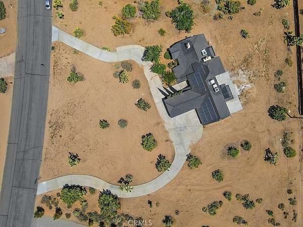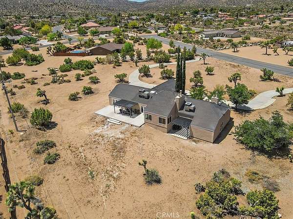 This FULLY TRANSFERRABLE PERMITTED AirBNB/VRBO, Spacious, Absolutely Beautiful, and Fully Remodeled Chateau-Style Home in Upper Sky Harbor with leased solar is seated on 1.55 acres and surrounded by gorgeous views of the desert and surrounding landscape. This house has an extremely open floor plan, allowing for entertainment on a grand scale. This home boasts 3 bedrooms, 3 bathrooms, vaulted ceilings, an absolutely stunning and fully remodeled massive Kitchen with stainless steel appliances, Breakfast nook area, dining room, den/office, game room, Gigantic Living Room, Family Room, 2 outdoor patios with coverings, a huge horseshoe driveway, various tree/plants/vegetation, a SPA and so much more!!! Nearby to Parks, Trails, and the famous Joshua Tree National Park. This is perfect investment as a STR and/or a beautiful desert retreat. This home has been permitted with the city and is listed on all major STR sites including AirBNB/VRBO. Agent/Owner are the same. COME SEE THIS BEAUTIFUL HOME TODAY!!!!