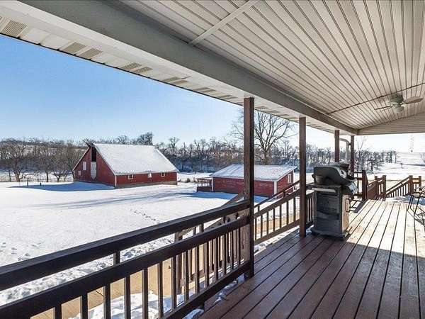 Tranquil and secluded living right on the Illinois–Wisconsin border awaits on this beautiful 4.96-acre farmette, where pasture and woods open to sweeping valley views. UTV enthusiasts will feel right at home here, with plenty of room to explore and enjoy the outdoors. Take in the peaceful setting from the covered porch, wrap-around deck, tile block patio area, or simply wander the yard and woods and soak in the scenery. The updated bungalow-style home features hardwood and tile flooring throughout and an open, welcoming floor plan that blends the kitchen, dining, and living areas seamlessly. A walk-in pantry adds convenience, while the flexible layout allows for one or two main-level bedrooms—perfect for a bedroom, office, or exercise room, depending on your needs. Upstairs, you’ll find a spacious primary suite with laundry nearby, along with an additional bedroom or office. Outbuildings add tremendous value and versatility, including a 24 x 26 insulated detached garage, new sidewalks, an asphalt drive with turnaround, and an enclosed porch that offers extra storage and keeps the elements at bay. The property also includes a 12 x 24 storage shed currently used as a chicken coop and a 40 x 54 barn with a metal roof and nearby water hydrant. This setting is ideal for gatherings, gardening, hobby farming, or raising a few horses, cows, chickens, or other animals. It’s also a wonderful opportunity for those seeking a more self-sufficient, off-the-grid lifestyle. The work is done—now it’s time to relax and enjoy. Bring your pre-approval letter and come discover everything this special property has to offer.