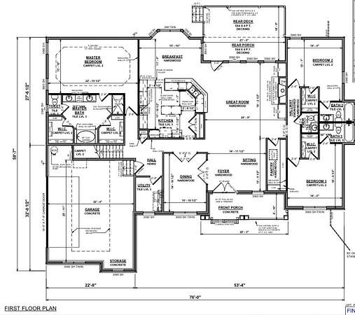 - Bedroom x 3, Dining Room, Kitchen, Living Room, Master Bathroom, Recreation Room