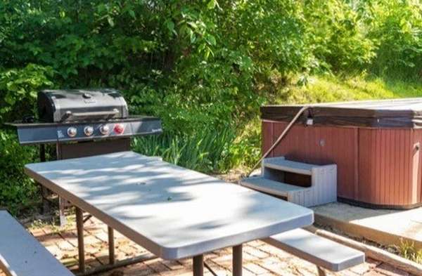 Hideout Cabin: 1 bedroom, sleeps 4, fully furnished, with air conditioning, washer and dryer, Wi-Fi, and a jacuzzi just outside the door