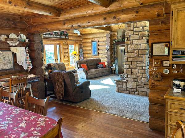 Stunning Log Home on +-21 Private Acres with Missouri River Views
