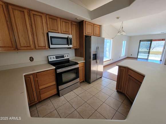 Great opportunity to own a HUD Home & save thousands! This newer home offers an open floorplan with vaulted ceilings & spacious living areas. Enjoy stunning desert and mountain views in every direction. The property includes a 2-car attached garage and a detached 1200sqft 3-car garage with a separate workshop area. Set on over 9 acres, this home provides plenty of space and privacy. Additional features include a private well with extra laundry facilities and utility sink in the well house. Ideal for those seeking peace and privacy! Please see attached MLS Addenda for property specific disclosures & repairs. Bidding on a HUD Home is quick & easy! Buyers or agents please reach out for help with any part of the bidding process.