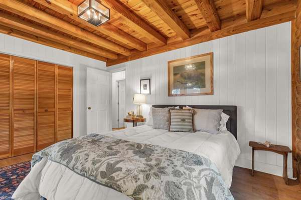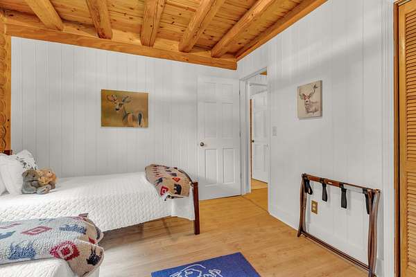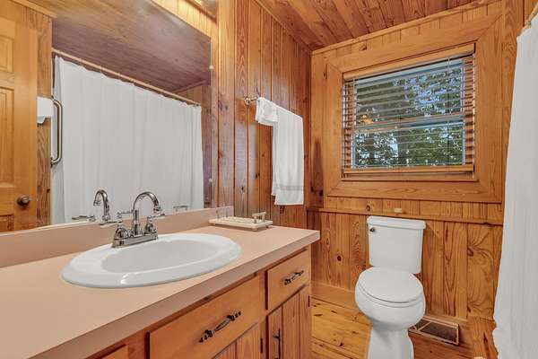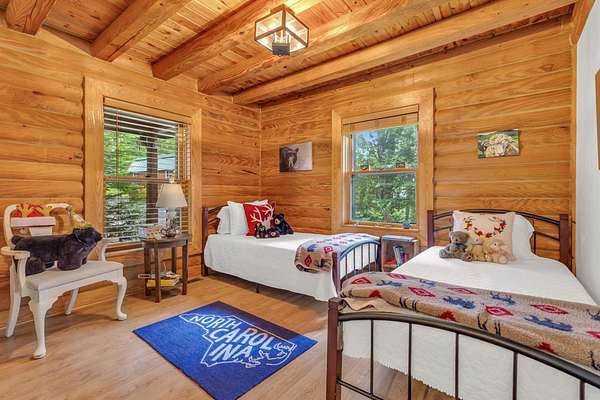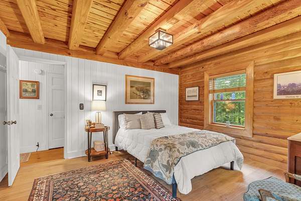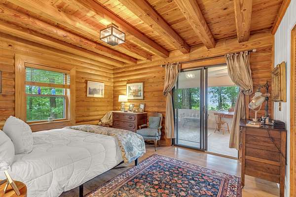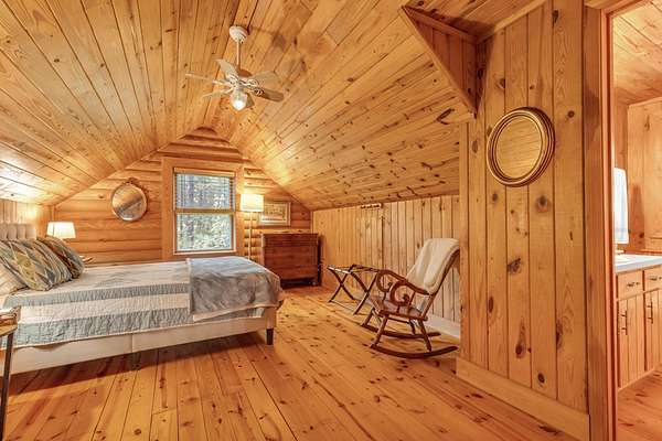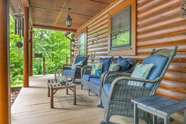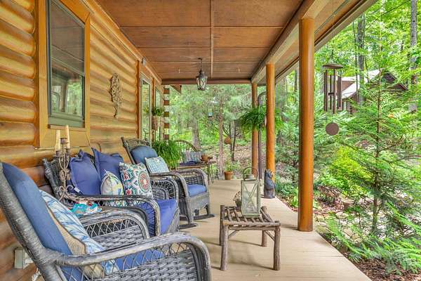 Discover the charm of mountain living on White Oak Mountain with our exquisite log cabin featuring a distinctive green roof and a welcoming front porch, all sited on 2.4 pristine acres! This stunning 3 bedroom & 2 bath cabin not only offers a cozy retreat in nature but also showcases exceptional craftsmanship and attention to detail. Features include: Hardwood floors, Stone Fireplace with gas logs, cathedral ceiling, wood beams, spacious sunroom, a side deck for morning coffee overlooks year round views, storage shed, additional storage/workshop under house!. Enjoy a primary bedroom on main level or second level primary bedroom has an ensuite bath. The HOA features scenic fishing ponds, Pavillon for community or private parties, picnic area, walking trails, plus Shunkawauken Falls! Perfect for weekend getaways or as a serene permanent residence, it harmonizes with its surroundings while providing modern comforts. Too much too list, call for a tour today! Embrace the tranquility of cabin life and make this unique property your own today. Come make new friends in the scenic mountains of North Carolina.