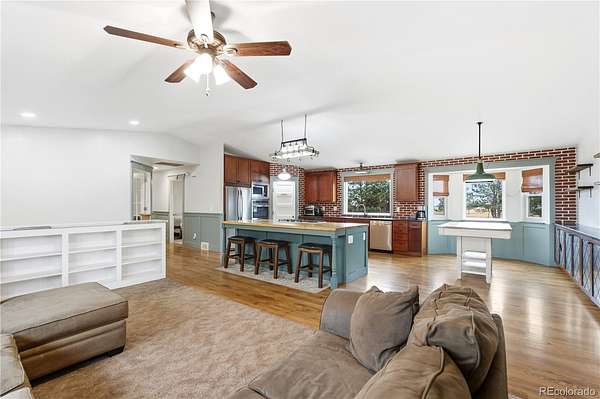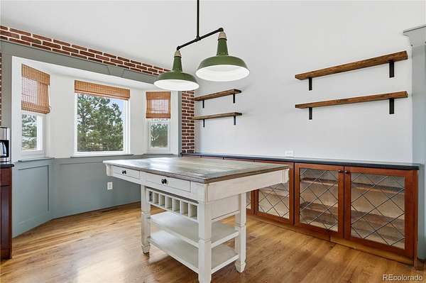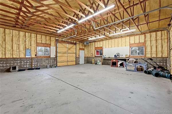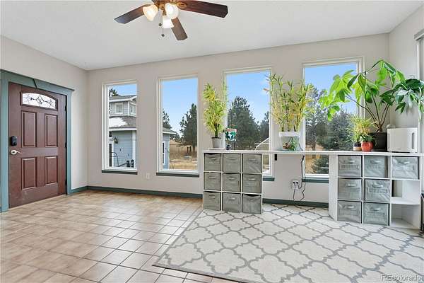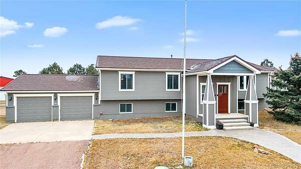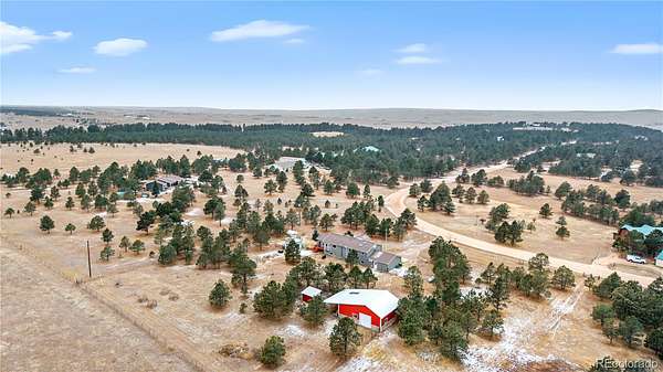 Discover the perfect blend of privacy, craftsmanship, and Colorado country charm in this beautifully remodeled 4-bedroom, 3-bath home on 5 peaceful acres in Black Forest. Thoughtfully updated throughout, this property offers rural living with easy access to nearby amenities, giving you space to roam without sacrificing convenience. The great room welcomes you with vaulted ceilings, abundant natural light, a bay window, and custom built-ins with quartz counters. The remodeled kitchen features hardwood floors, slab granite, a butcher-block island, double ovens, dual-tone cabinetry, a brick surround, stylish farmhouse lighting, and a spacious dining area with glass-front cabinetry. A dedicated office with French doors provides the perfect work-from-home setup. The primary suite offers a serene retreat with a custom closet system, oversized shower, stone counters, wainscoting, and hardwood floors. The finished lower level includes carpet, a craft/flex area, two additional bedrooms, a large bath, and a cozy family room with a wood stove. Major upgrades include Andersen windows, Thermatru exterior doors, new interior and exterior paint, custom railings, a Class 4 roof, new gutters, a new septic tank, central vac, and pre-plumbed compressor lines in the home, barn, and shop. Outdoor living shines with a fully fenced backyard, mature pines, stamped concrete walkway, a plumbed hot tub pad, and multiple high-quality outbuildings. The 1,440 sq ft barn offers water, electric, and a hay loft. Bring your livestock, small farm animals, and horses they are welcome here. The 30x35 heated shop features spray-foam insulation, a high-BTU heater, 100-amp service, overhead doors, and concrete floors. A detached extended 3-car garage adds even more storage. Additional amenities include a chicken coop with electric, a 7x14 greenhouse with thermal fan, drip system for trees, and no HOA—perfect for animals, outbuildings, and RVs.